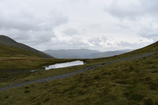 Carlside is dead ahead, however we wouldn’t head there yet, we branched left to head for the tarn first. Skiddaw Lower Man is the dark fell at the back