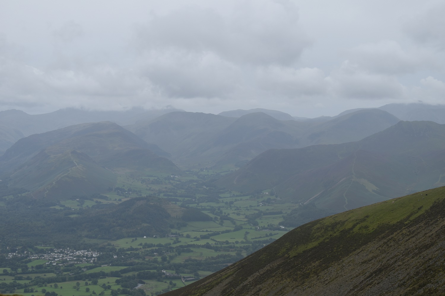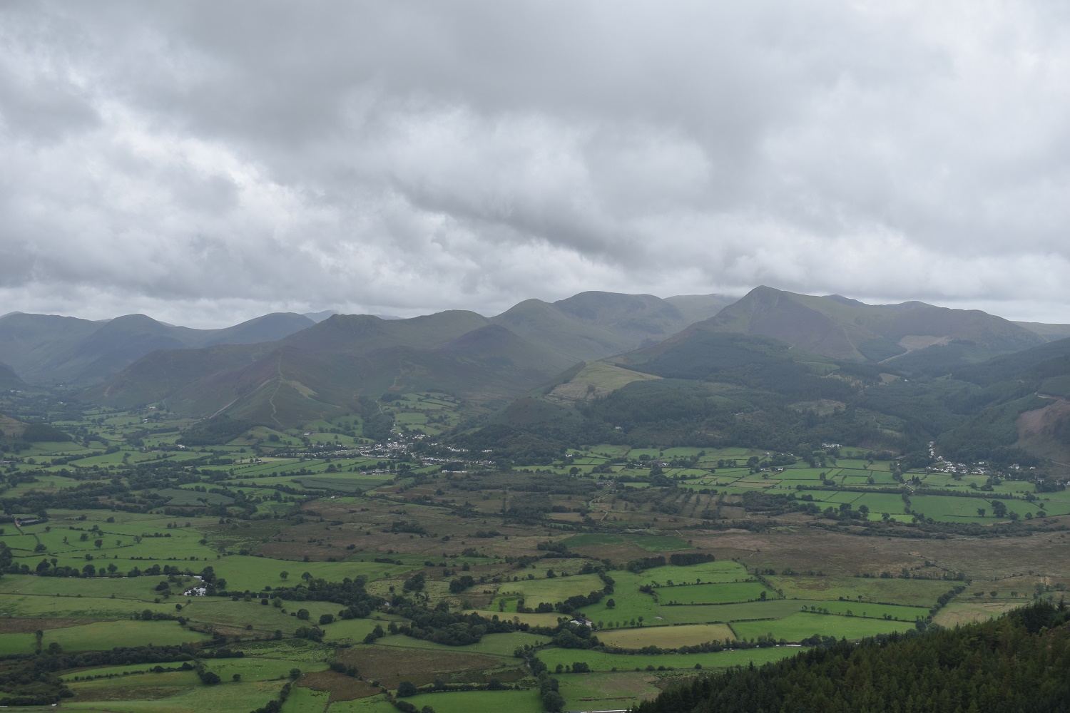 Southerndale lies below Longside Edge, the slopes of Skiddaw to the right with Binsey in the distance