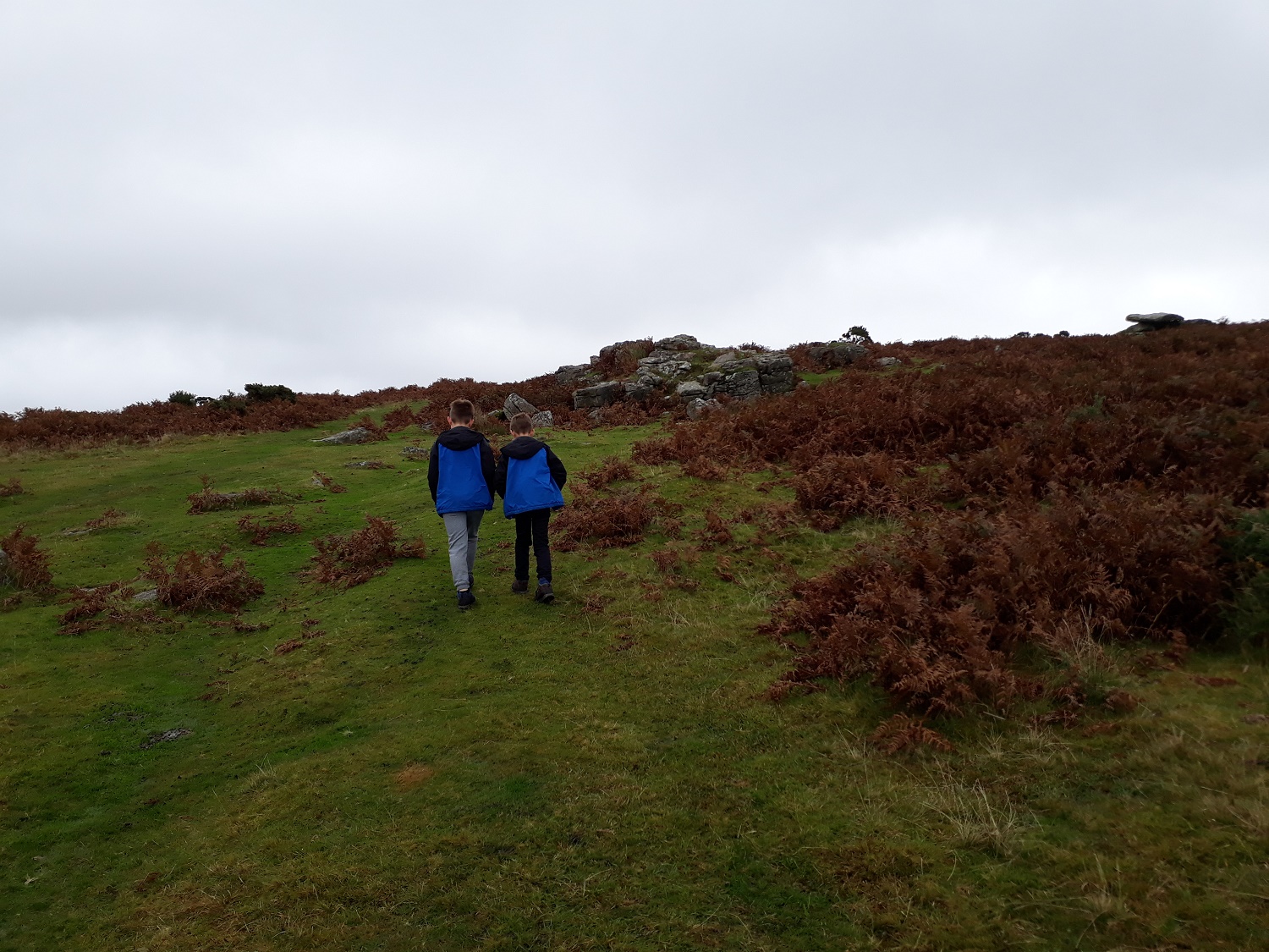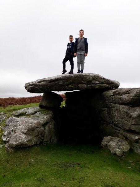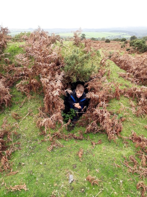 Hawks Tor and the boys. There is always a huge puddle in the cave which means it isn’t really a shelter