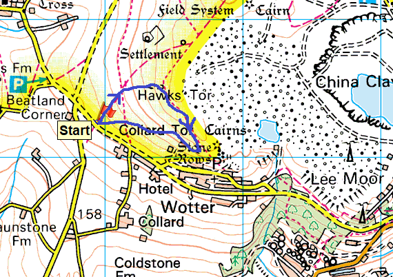| Route – Hawks Tor – Collard Tor – Shaugh parking |