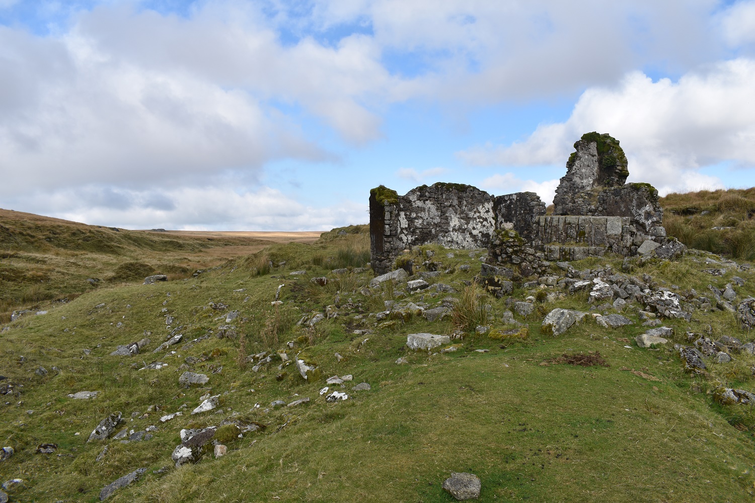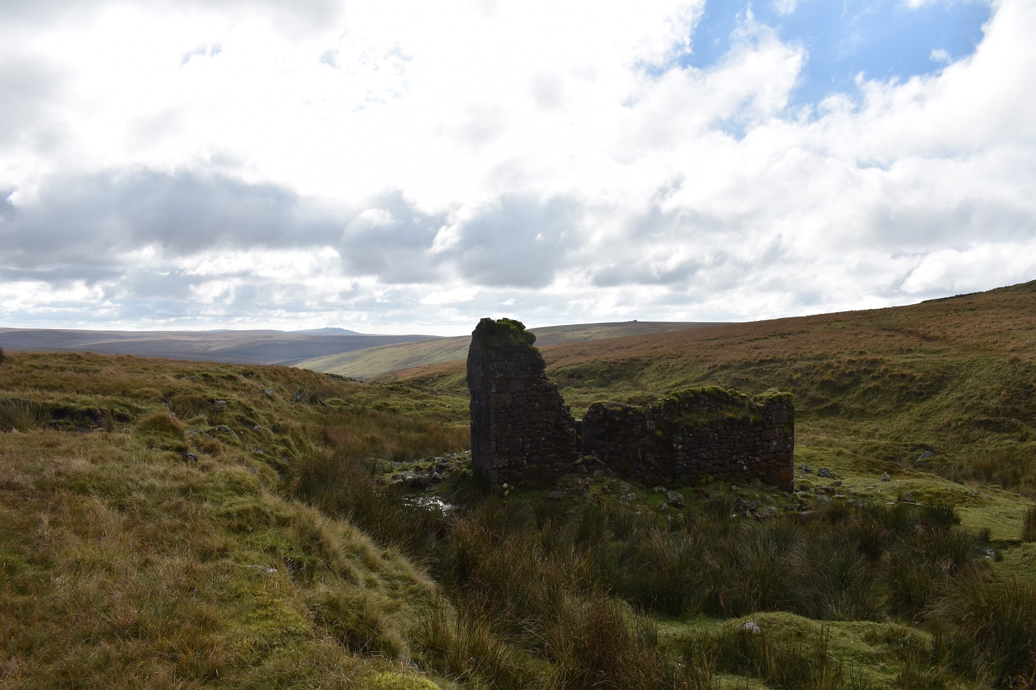 Swinging around you can see both Dunna Goat Tors with Great Links Tor peeking up to the right. Bleak House is down by the brook below