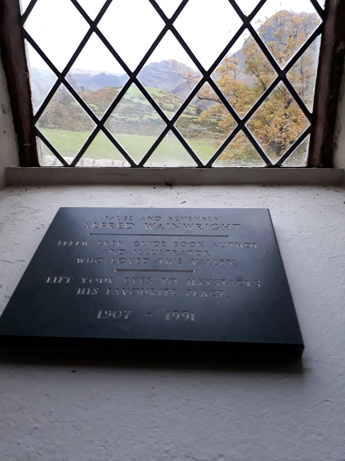“Lift your eyes to Haystacks, his favourite place” Framed in the window, AW’s resting place