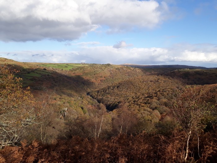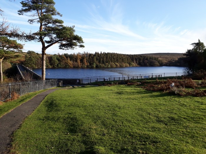 This is a walk to another of the smaller, lesser tors that I haven’t been to before. Aller Brook Outcrop is a nice little gathering of rocks overlooking the River Dart and its valley. We decided to add in Combestone Tor as well as it allowed us to carry on following the Aller Brook as we had done to get to the outcrop. The weather was a mixed bag with showers sweeping in on the strong breeze in between long spells of sunshine. For November it wasn’t too cold but the leaves on the trees are mostly on the ground now, so hopefully it means the frosty weather is nearly here. The end of this walk gave us a chance to do half a circuit of Venford Reservoir and take in some lovely reflections along the water.