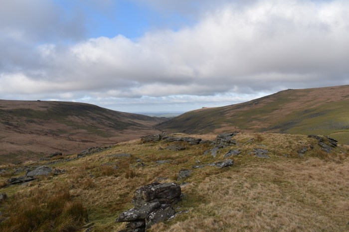 On Lints Tor and looking back along the West Okement. Fordsland Ledge is on the right. I am heading up and left out of this photo