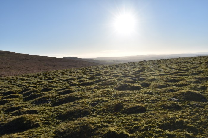 Couldn’t believe it. Its not a place I would associate with boggy ground, its coming off a high plateau just as the ground starts to steepen, before falling down to the valley. Small boggy holes everywhere and I ended up crawling out. I was covered in thick black peaty mud. Glad no one smelt me!!