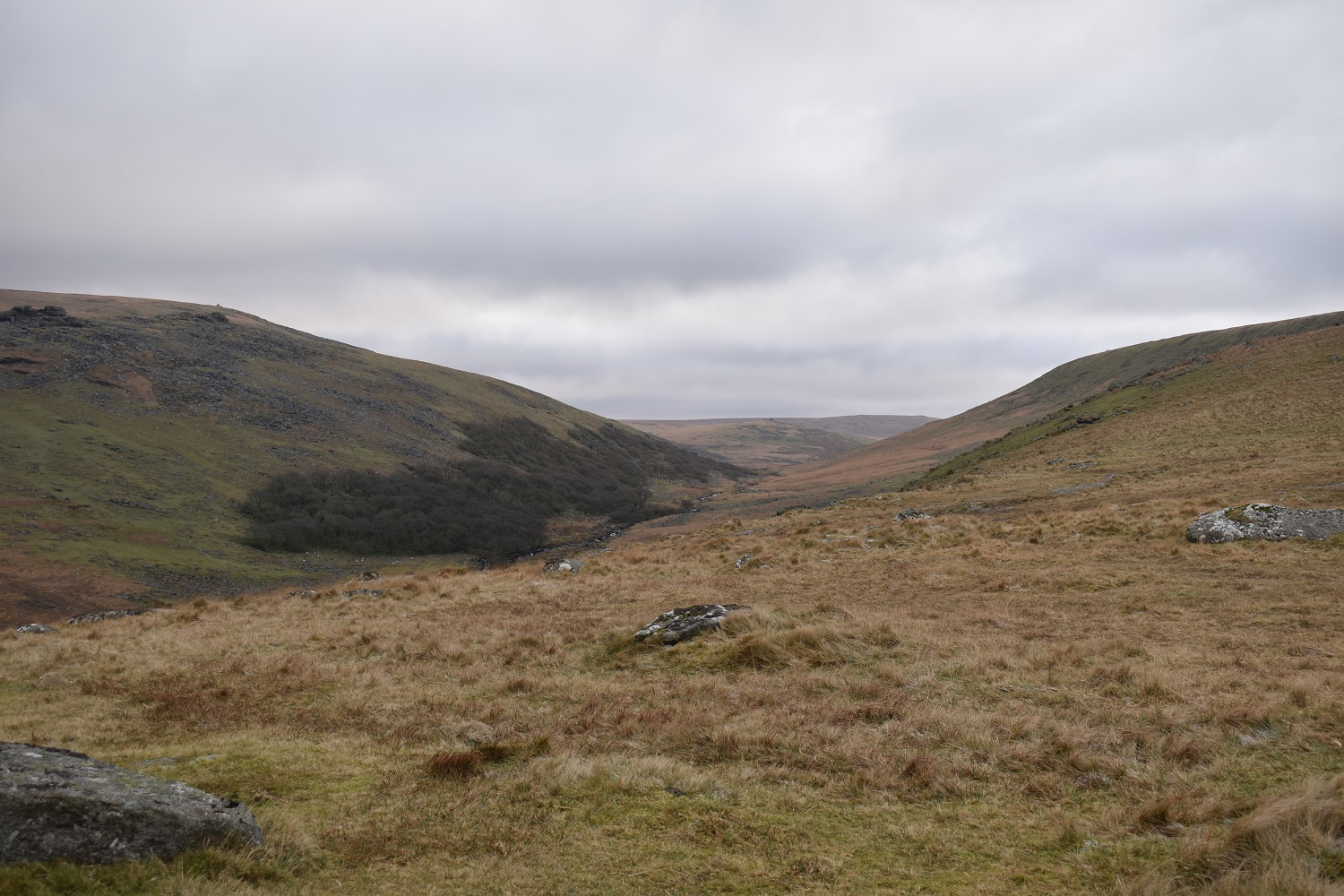 On Lints Tor and looking back along the West Okement. Fordsland Ledge is on the right. I am heading up and left out of this photo