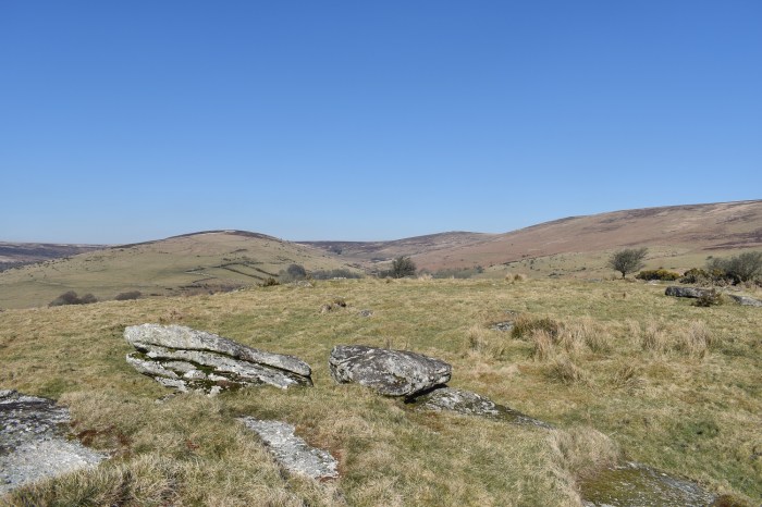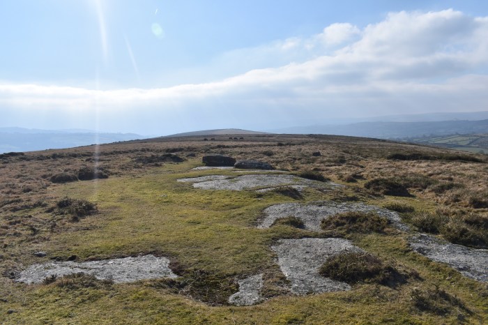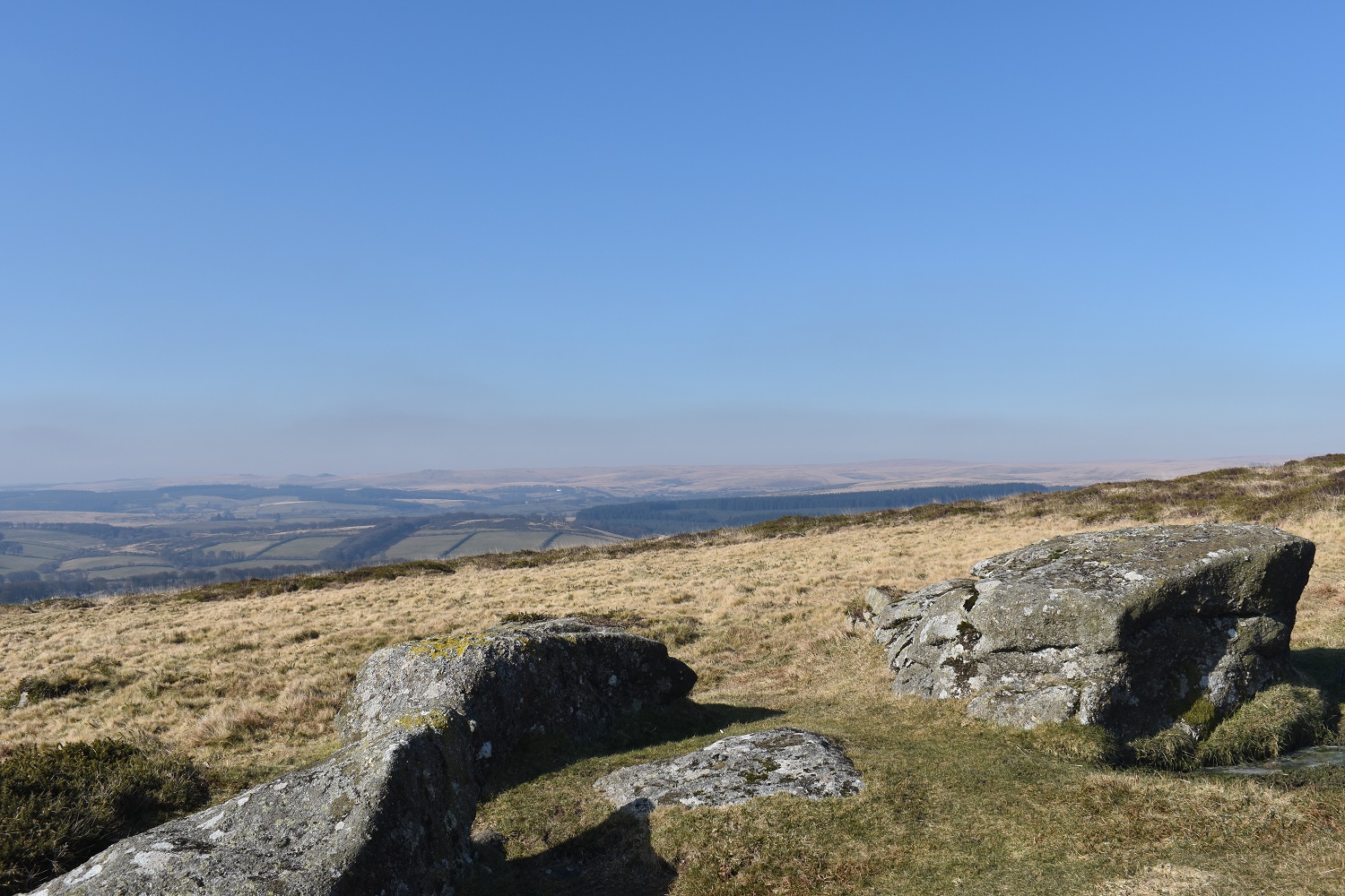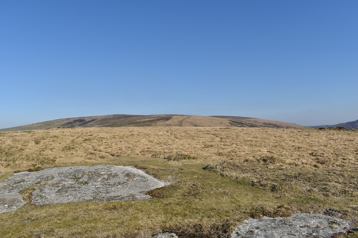 The circular wall down there is Grimspound, a bronze age settlement, likely older than Stonehenge. Hookney Tor rises up behind