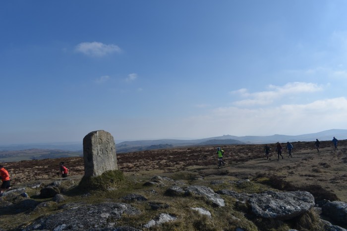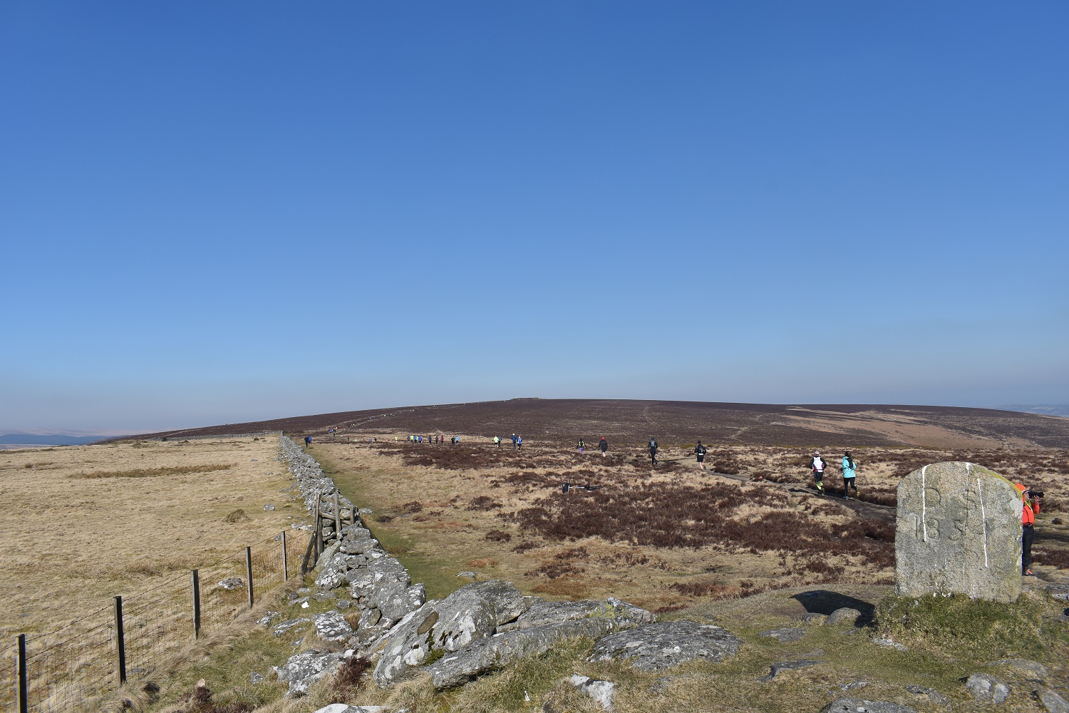 This is looking up to Hameldown. Those with a keen eye will see a line of brightly clad runners heading up the path