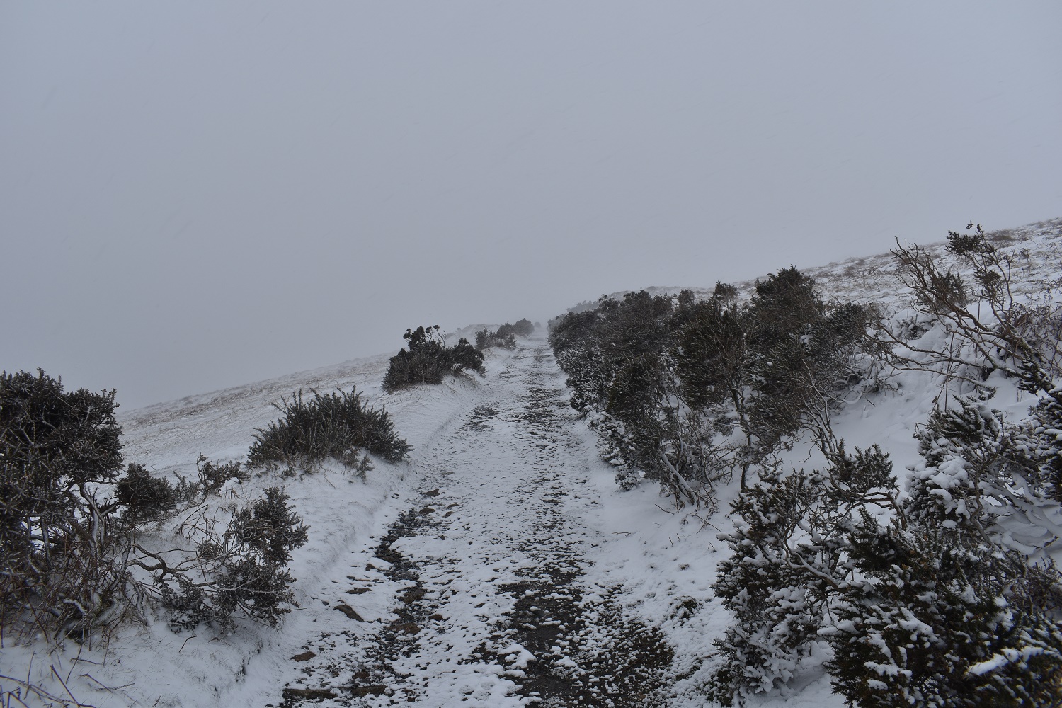 Crikey, this was the lane back down to the car, totally different now than the second photo in this set. The wind was properly whipping up the snow as I came off Western Beacon making it difficult to navigate and I almost ended up going the wrong way at least twice. I was glad to make the gate and get back to the car. The road at the bottom was clear and gritted well so it was an easy drive back home