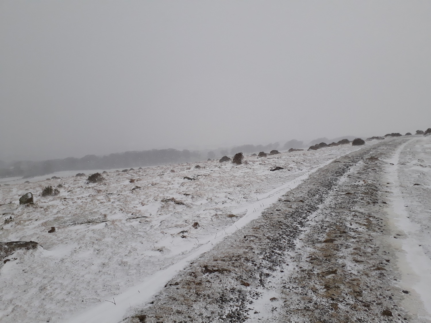 Starting out, I’m parked by the chimney on the left, I’d left Plymouth in glorious sunshine, however the weather front was sat right on the Plymouth boundary and by the time I’d got to Ivybridge it was snowing