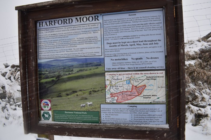Harford Gate sign. This was another place were I thought of parking however it was snow filled and drifting in the sunken car park