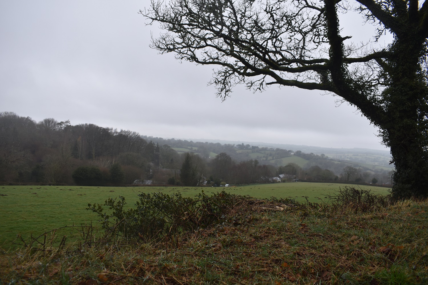 Walking down the road from the start point and you get views down to Gidleigh village and the church