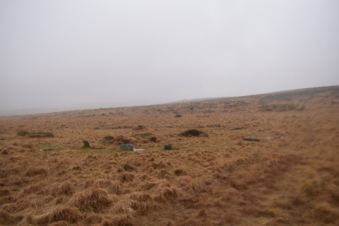 Buttern Stone circle, not the finest example on the moor as the majority of the stones are now lying flat