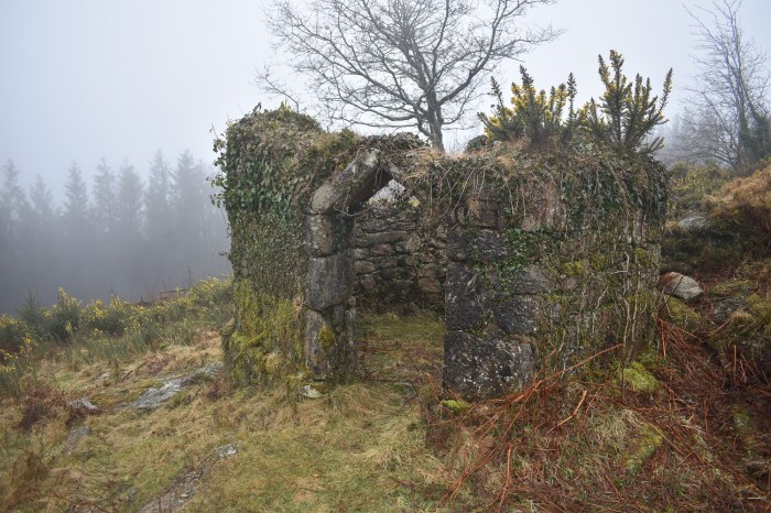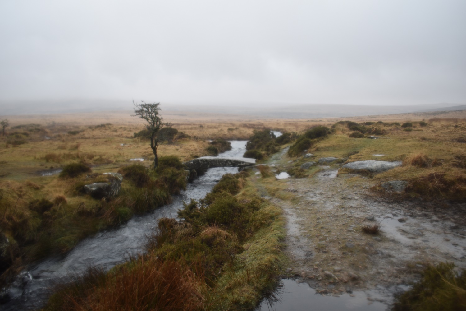 Looking at the weather forecast for this weekend I was downbeat. I sit here typing this looking at nice blue skies and sunshine out of my window. I’d watched the weather all week, knowing that I could only get out on the Saturday, hoping that it would be the better of the two weather days. This was not the case, Saturday dawned with low cloud and a bit of drizzle, not good, and after very heavy rain Friday evening and night it didn’t bode well. I headed off anyway to the north eastern side of Dartmoor, as far away as I get from my house, to an area that I’ve only been once before. I concocted a nice route around some lanes and across a few hills which I rarely get to, however on arrival I was in the cloud, so I decided to reverse my walk in the hope that it would clear by the time I got to the moors proper. It partially worked, however by the time I got to Buttern Hill it had started to rain a bit, that fine rain that soaks you through!!! Still going this way around leaves a great finish, with the sights coming thick and fast after leaving Buttern Hill with two bridges, a stone circle, a tor and the Tolmen Stone all within a few hundred yards of each other. A lovely way to finish
