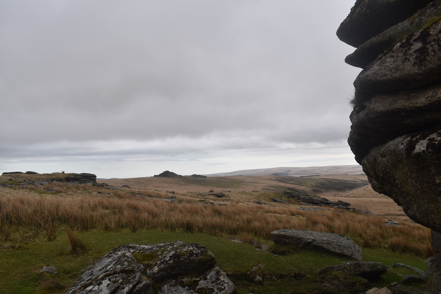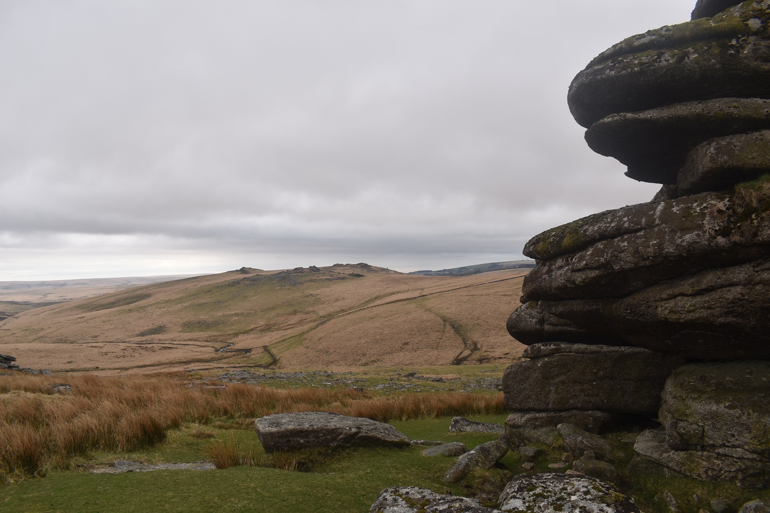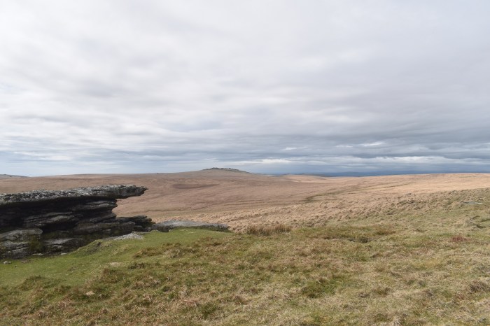 On Devils Tor with the menhir of Beardown Man on the right and Maiden Hill beyond. There aren’t many settlements near here so quite why this stone was stood upright not many people seem to know