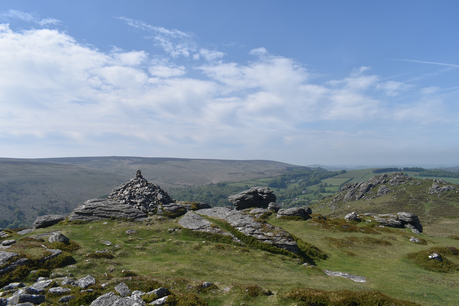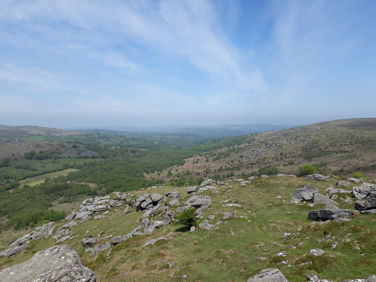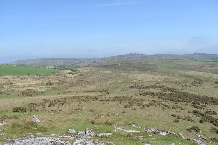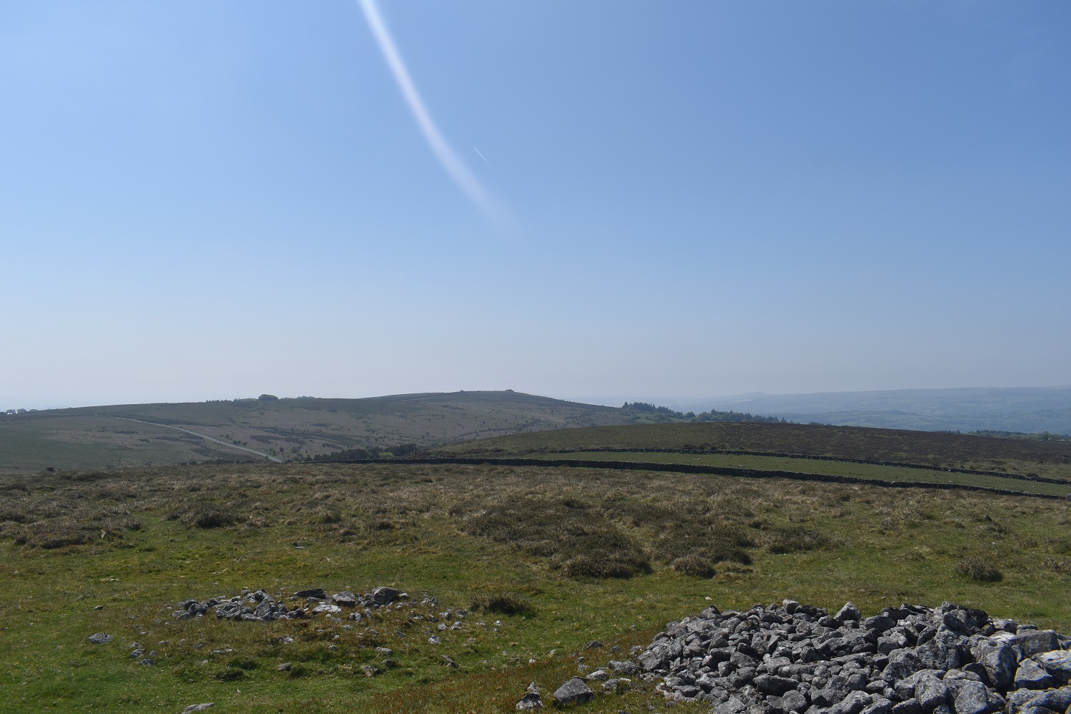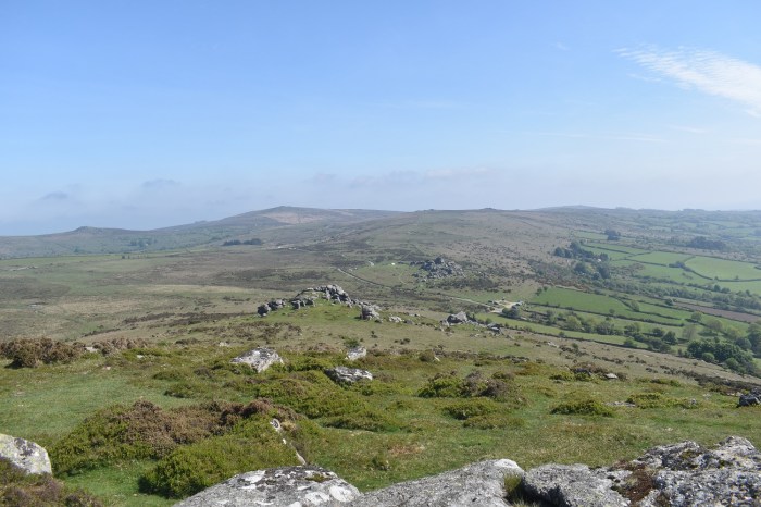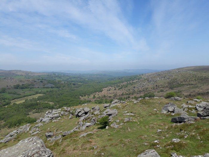Further round to the south is Corndon Tor and through the haze the Ryders Hill ridge can just be made out