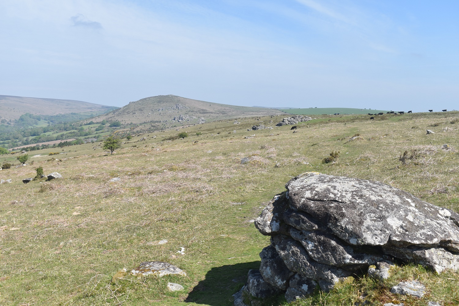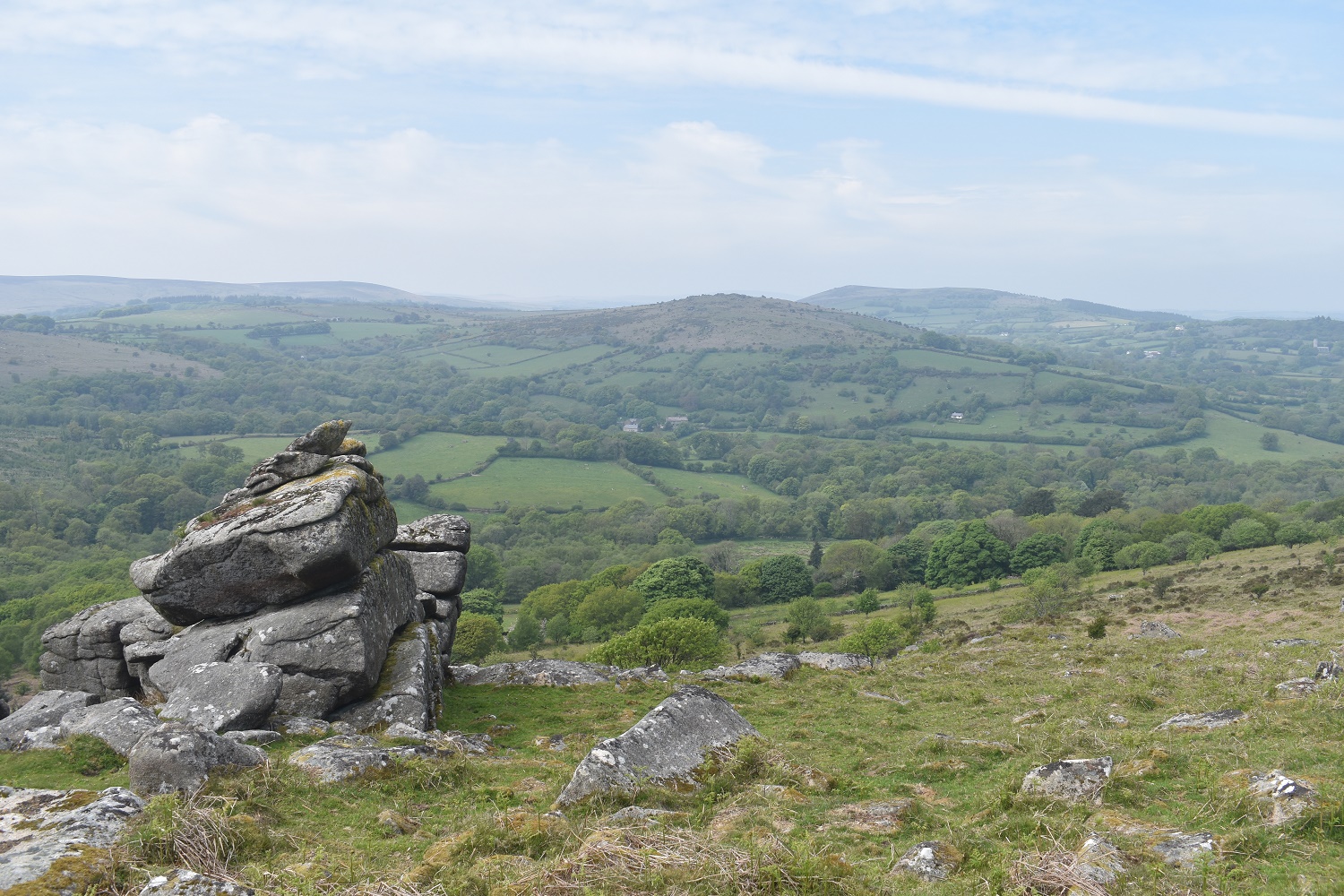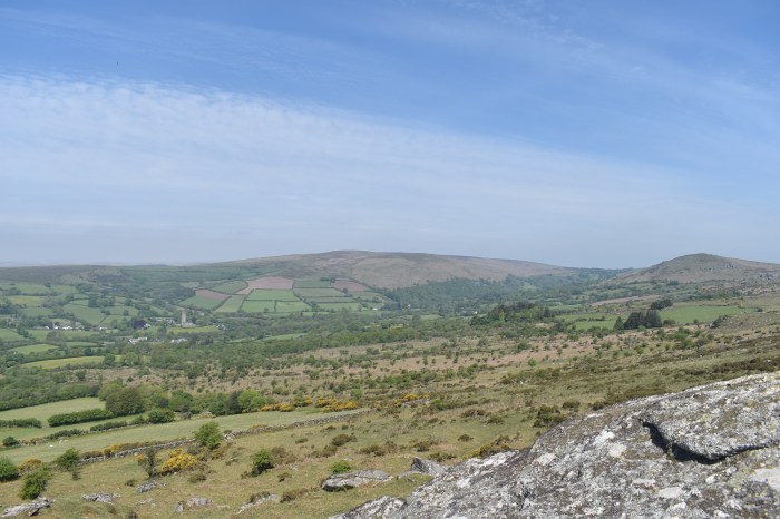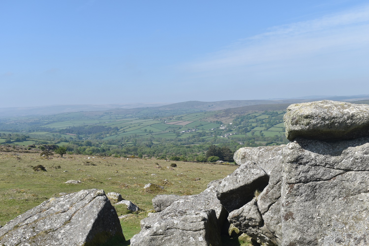 Further round to the south is Corndon Tor and through the haze the Ryders Hill ridge can just be made out