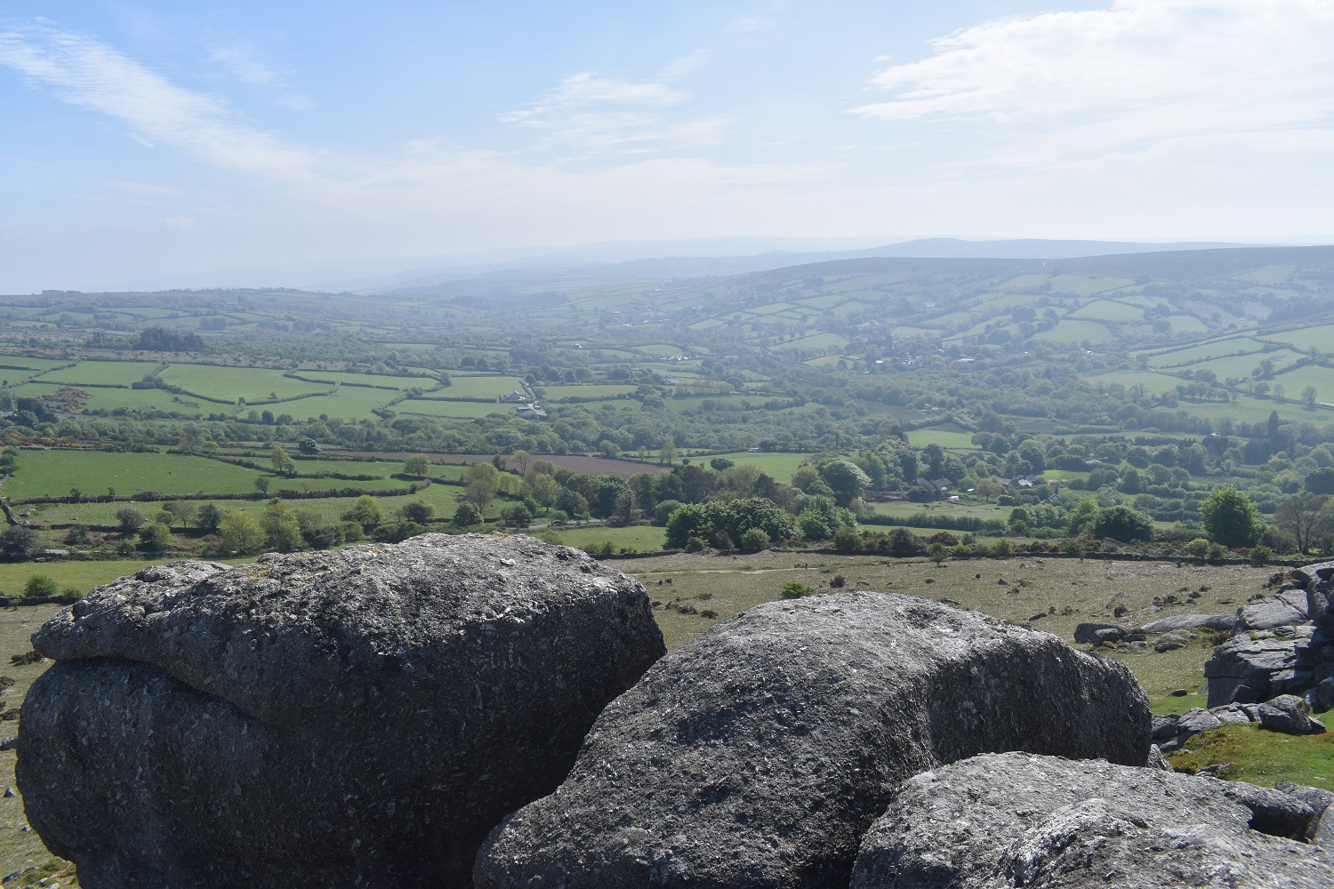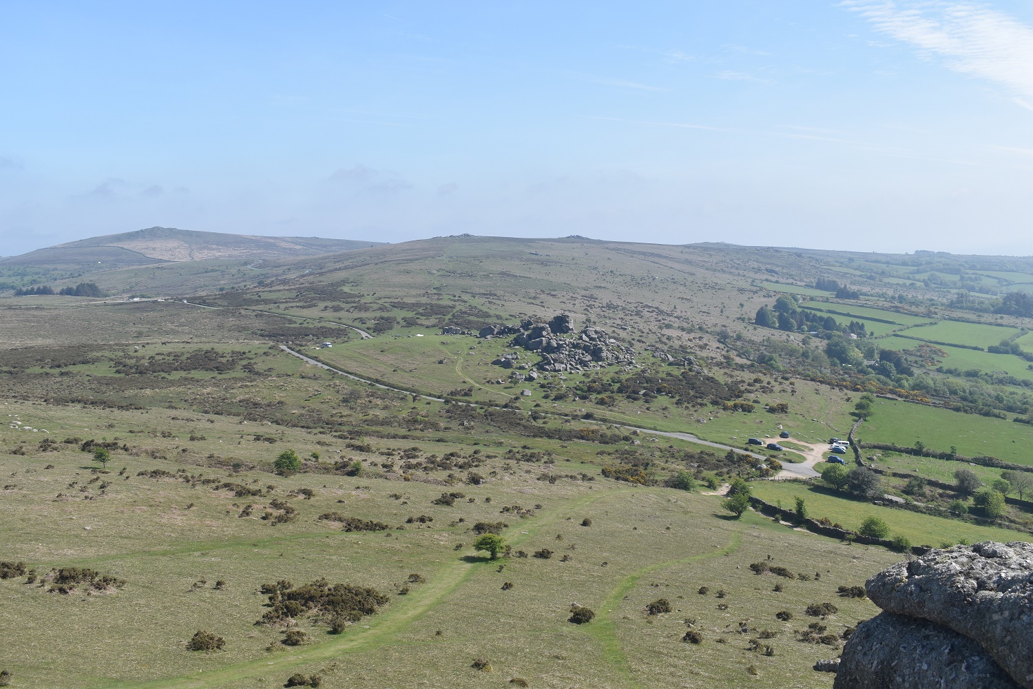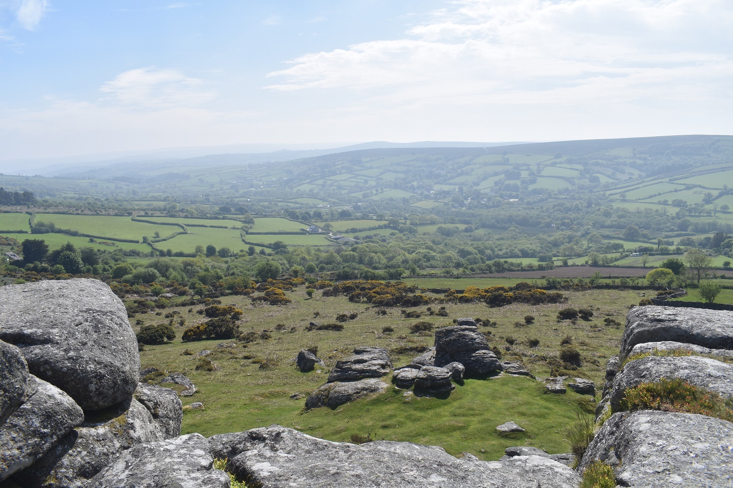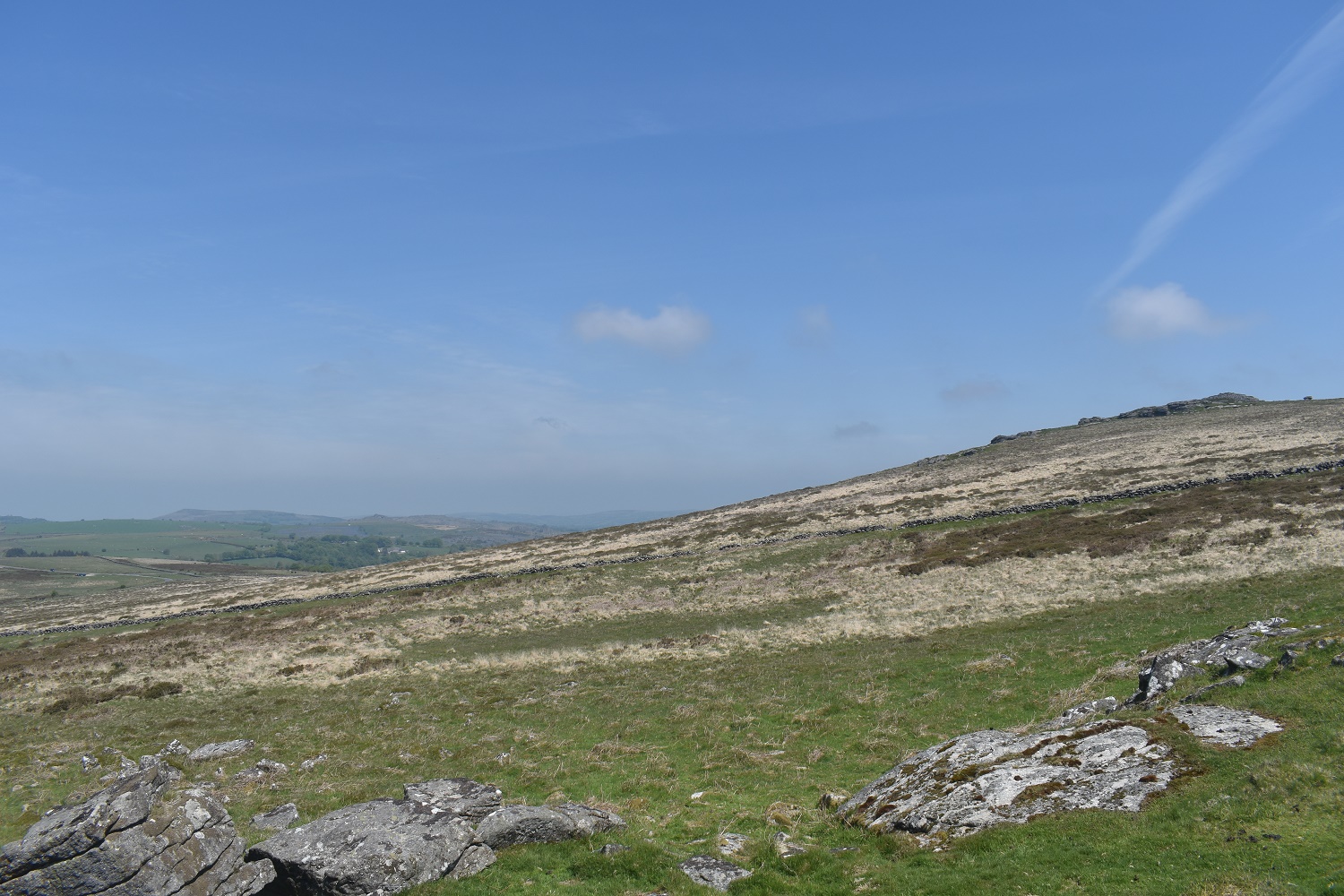 Further round to the south is Corndon Tor and through the haze the Ryders Hill ridge can just be made out