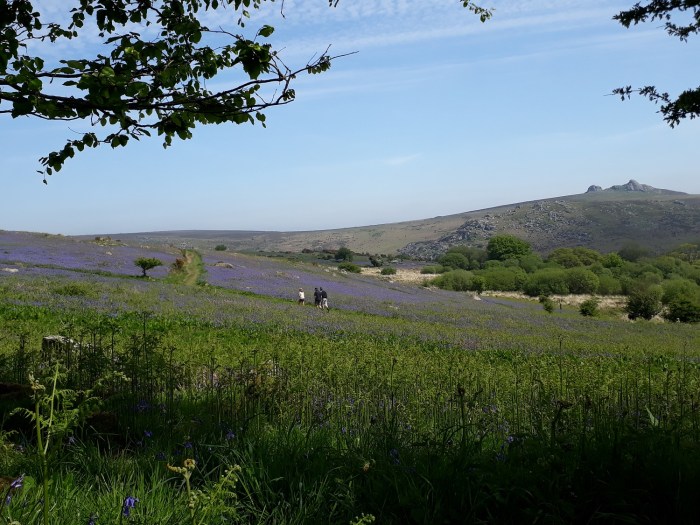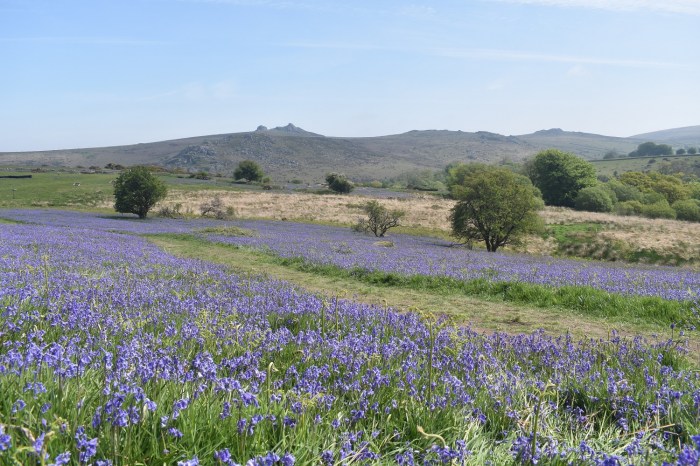 Now I’ve heard about and seen bluebells in woodlands, I’ve seen pictures of the Rannerdale bluebells in the Lakes but this is something else. Haytor stands out beyond but the eyes are drawn to the bluebells
