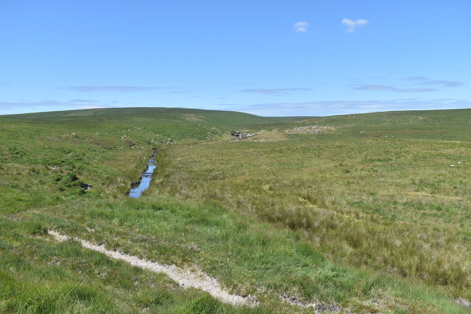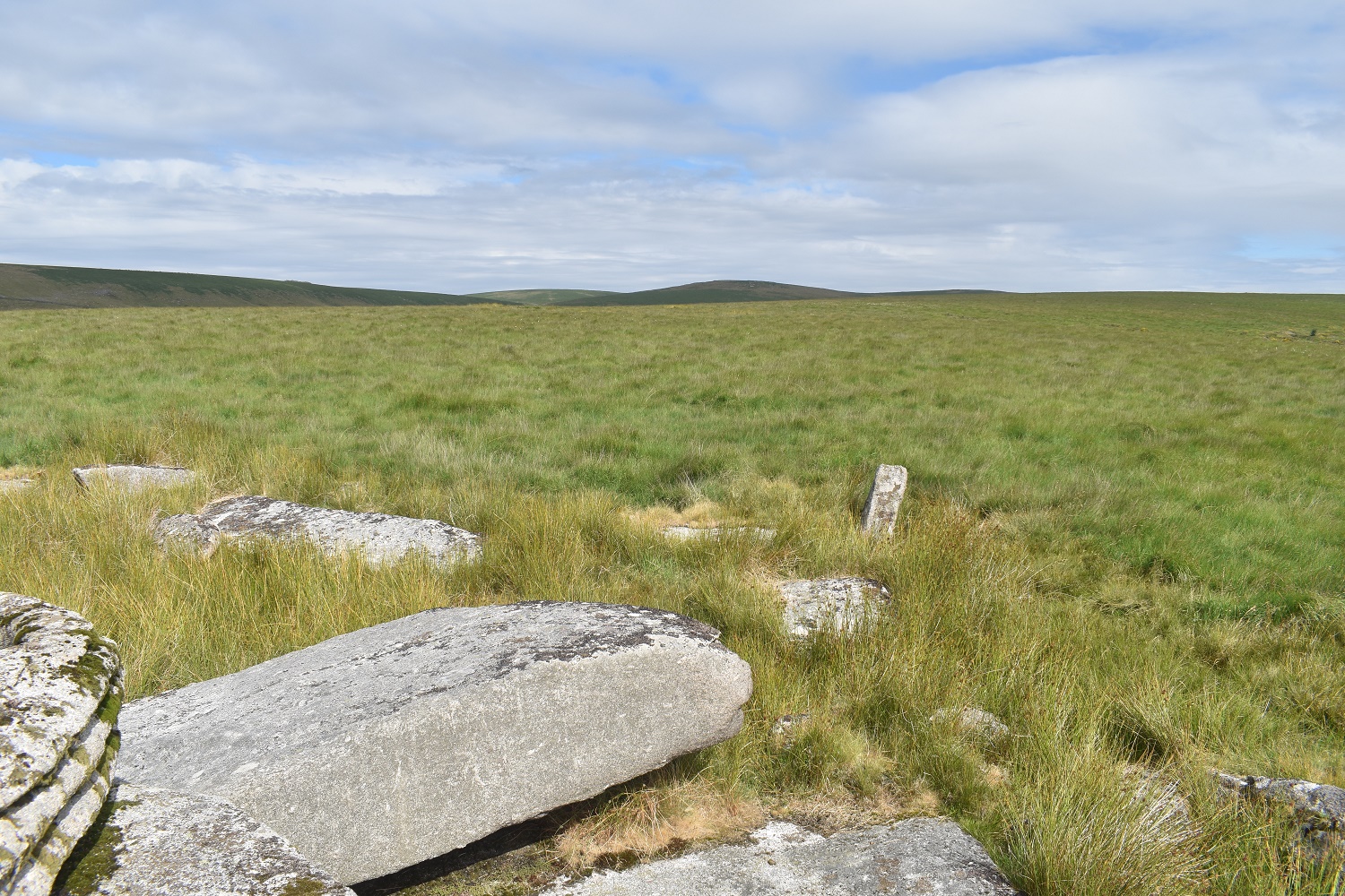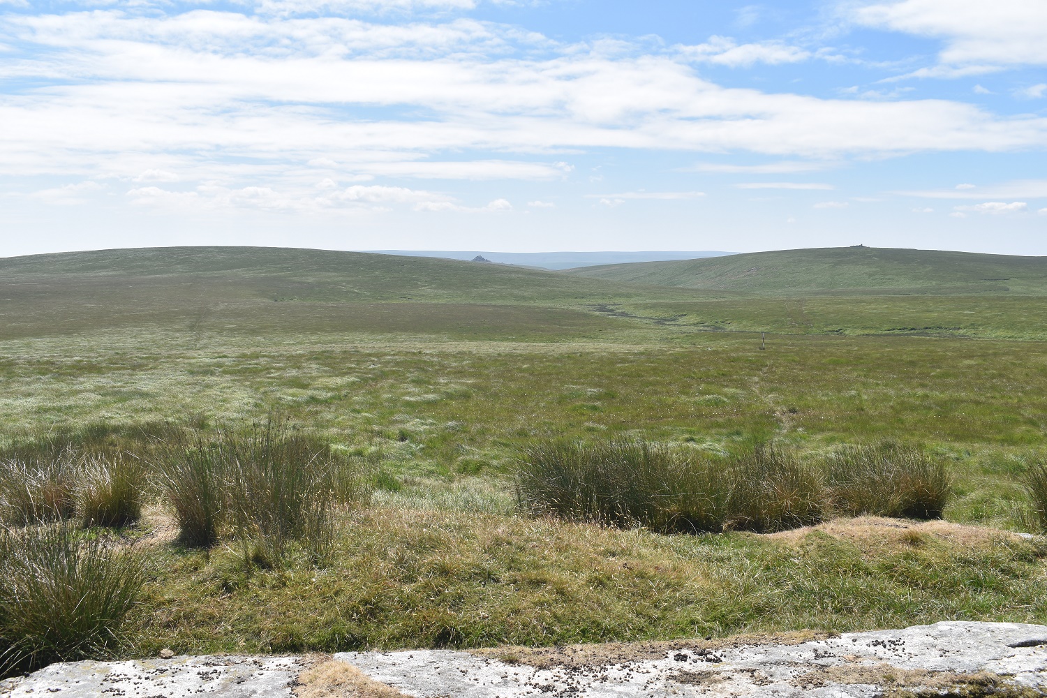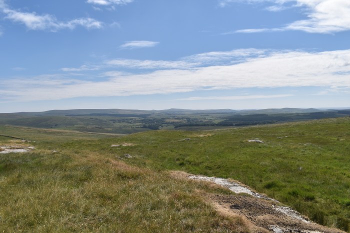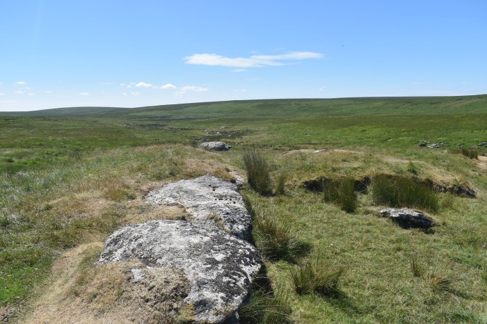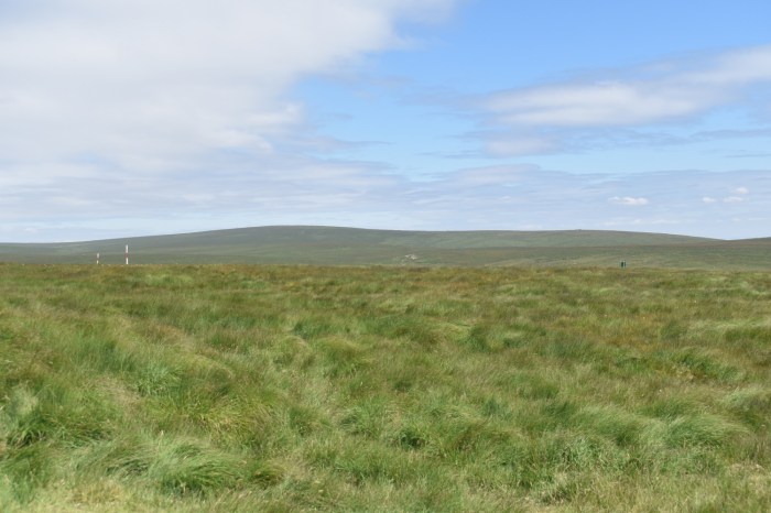 I’ve managed to find a quad bike track as I head towards Flat Tor. Cut Hill is at the back and the whiteish squares in the mid distance are part of an experiment on the boggy parts of Dartmoor, which this most definitely is