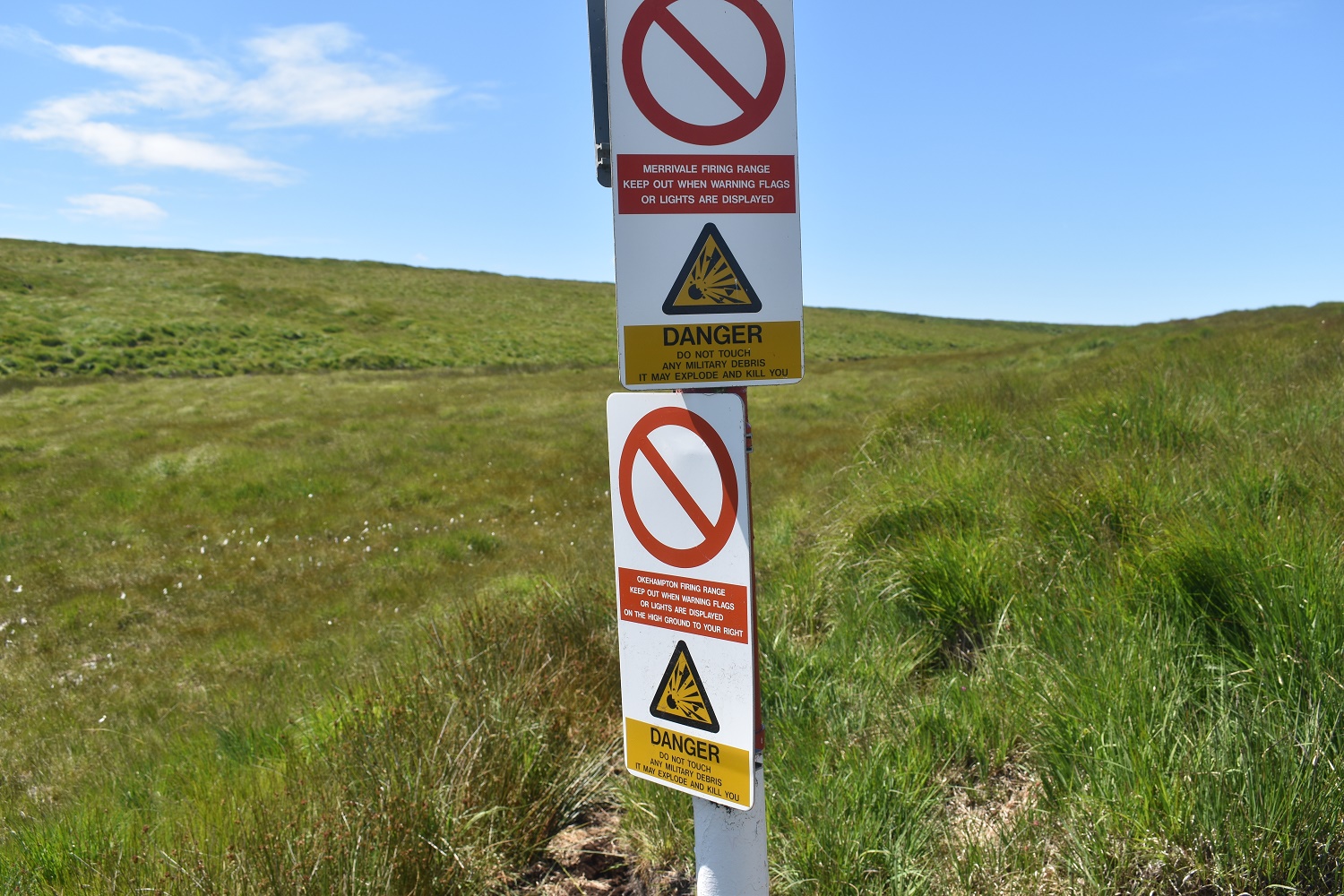 The post that marks the joining of the two firing ranges. Left is the Merrivale range and right is Okehampton