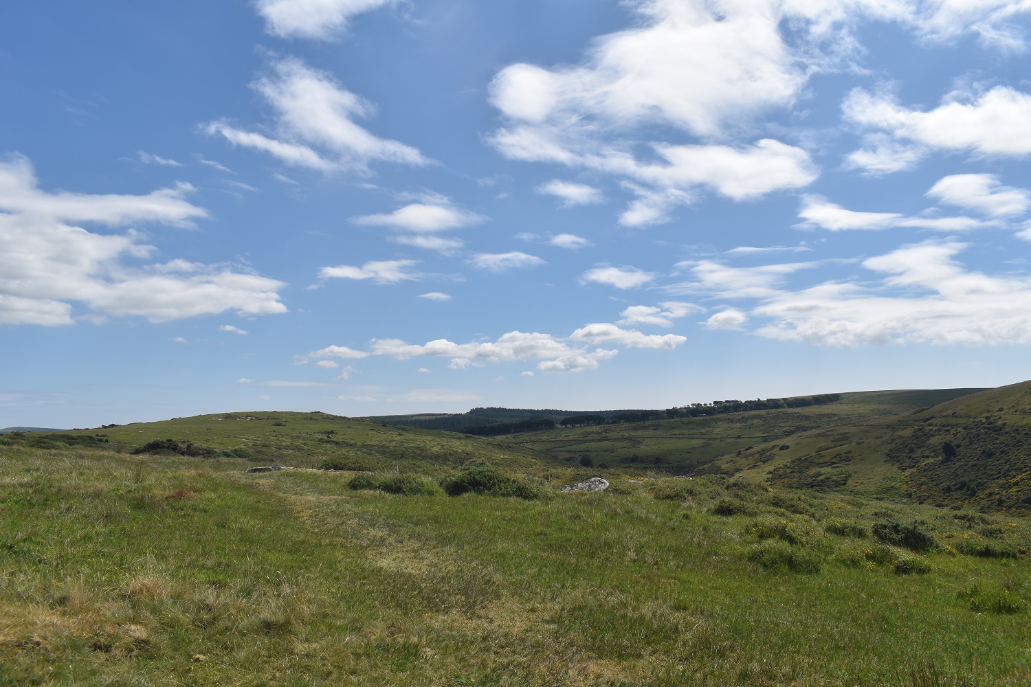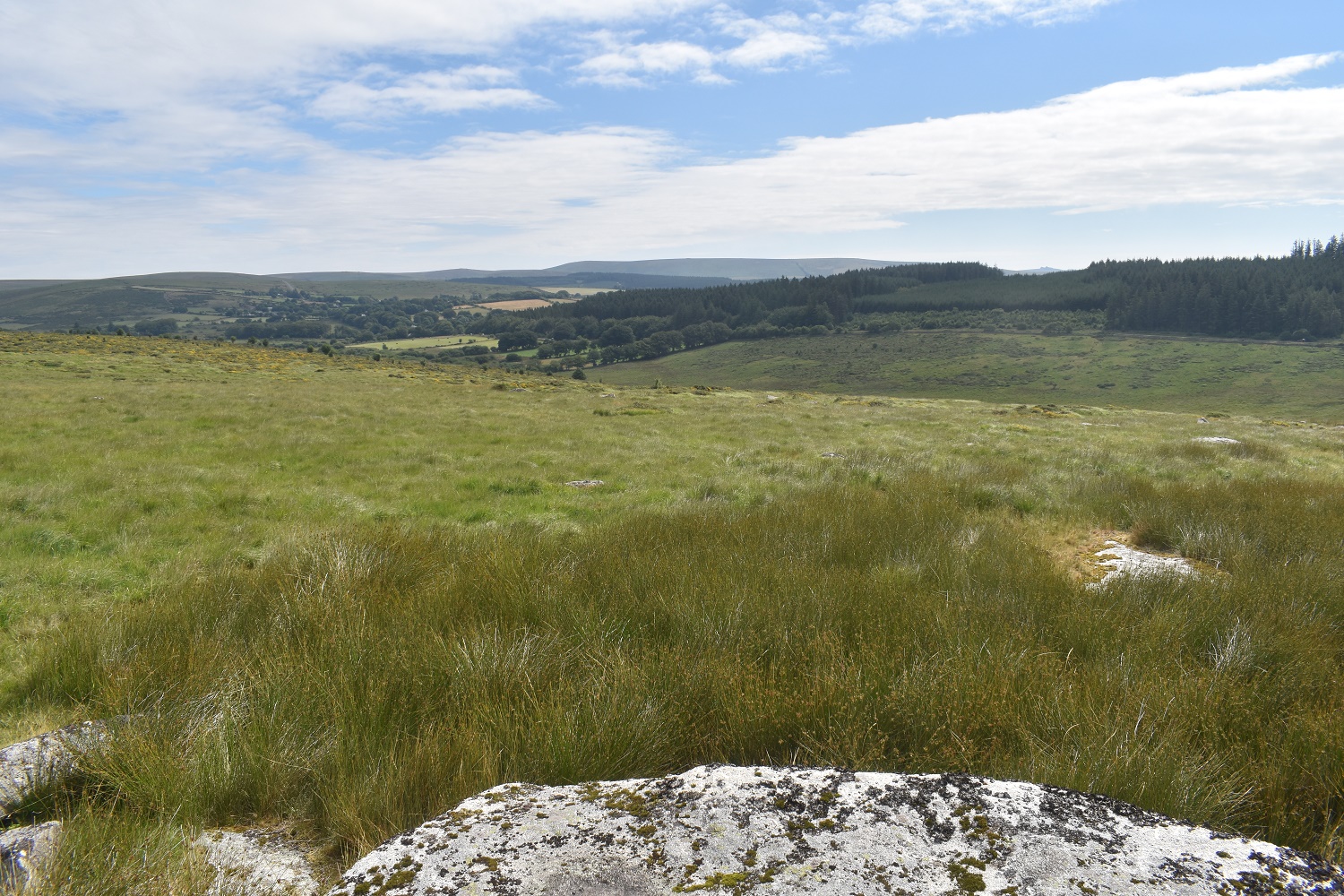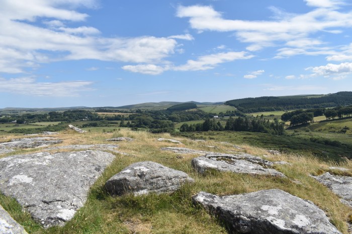 Looking to Bellever forest from Hartland Tor. I could see a spot down there by the river in the trees in which I would be able to get out of the sun for a bit