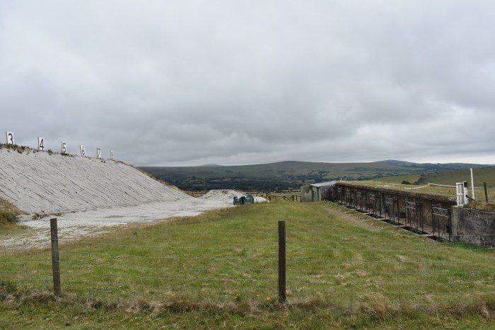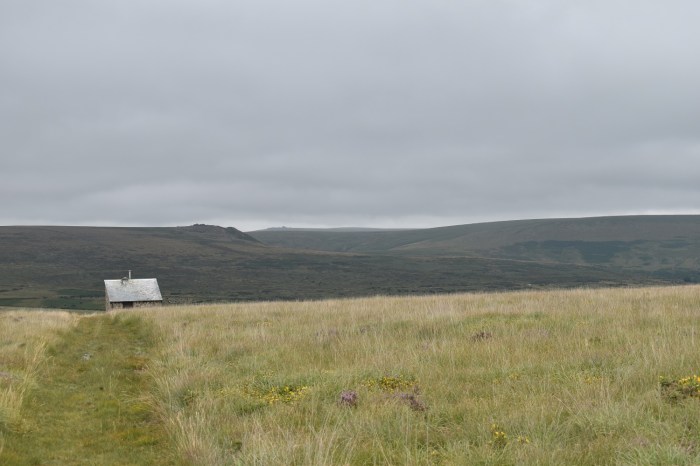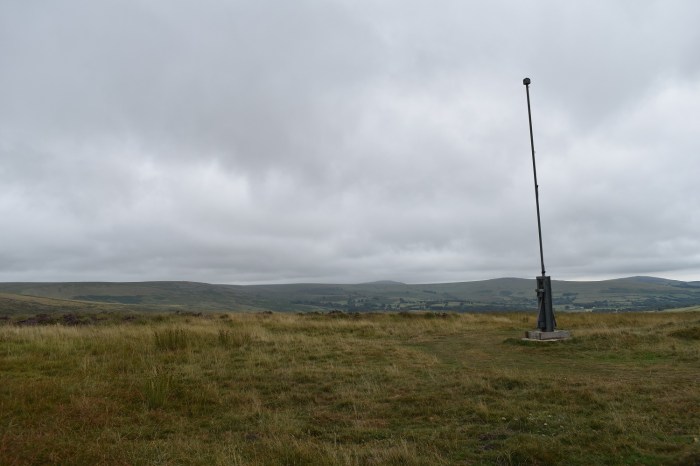 This is it, the marker posts are at 100 yard intervals. Hare Tor has some wispy cloud hanging around its top