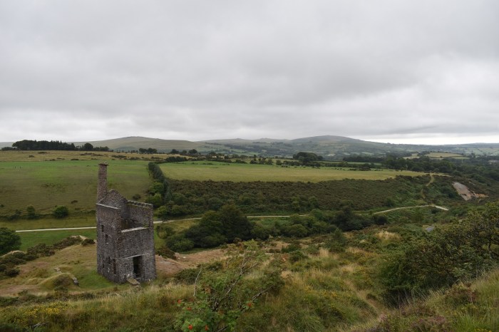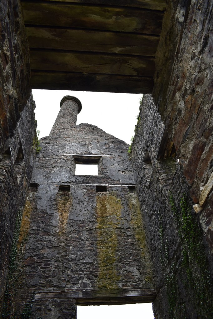 Inside Wheal Betsy engine house, it was famed for tin, lead and silver and the chimney leans at quite an angle. It has been standing here since the 1740s.