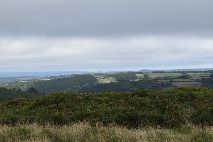 Somewhere slightly different today, still on Dartmoor, but right in the north eastern corner. This area is a fine place to walk if you don’t mind a bit of walking down lanes to get to places of interest or the odd hill and tor. I’ve parked here a couple of times now, firstly heading out southwards on a walk to take in Blackingstone, Heltor and Hingston Rocks as well as many other places. This walk heads north to Pin Tor and Uppacott Down via the lanes which have very few cars and are easy to walk along. That is, unless like me today, that the flies are out and follow you in the same way as a farm animal (about 18 inches behind your head. Bzzzzzzzzzzzzzzzzzzzzzz). The only respite was on the hills, were the breeze kept them at bay. It was a pretty warm and humid day, but no sunshine, but then again no rain either. The only other downside was the bracken on Butterdon Hill, it has made this hill pretty much impassable and certainly no fun at all. The bracken was shoulder height most of the way and I disturbed at least one deer who was hiding in there. All the paths to the summit were submerged in the green blanket, horrible. Come back in a month or so when it has died away. Still the actual route is a good one and I will do this again, possibly adding on Fingle Bridge as well.