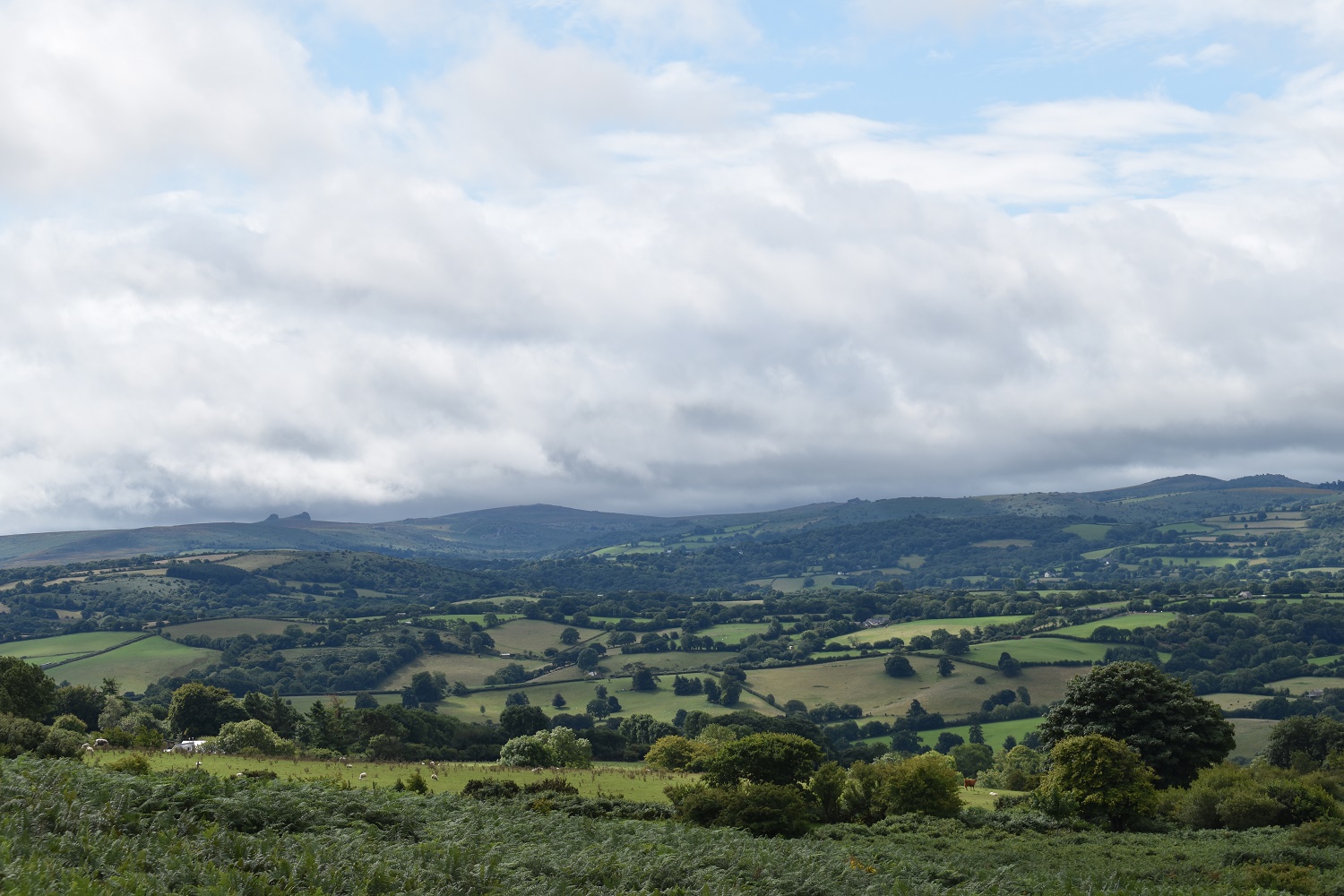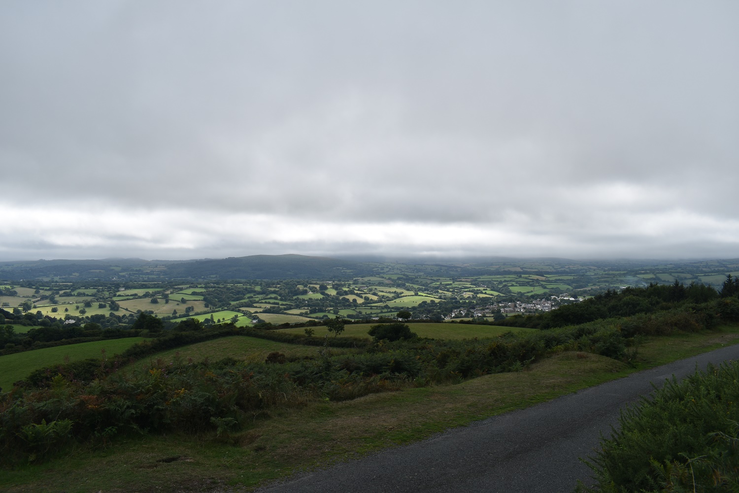 The cloud looks to be dropping to the west, That is Meldon Hill over there and Chagford to the right