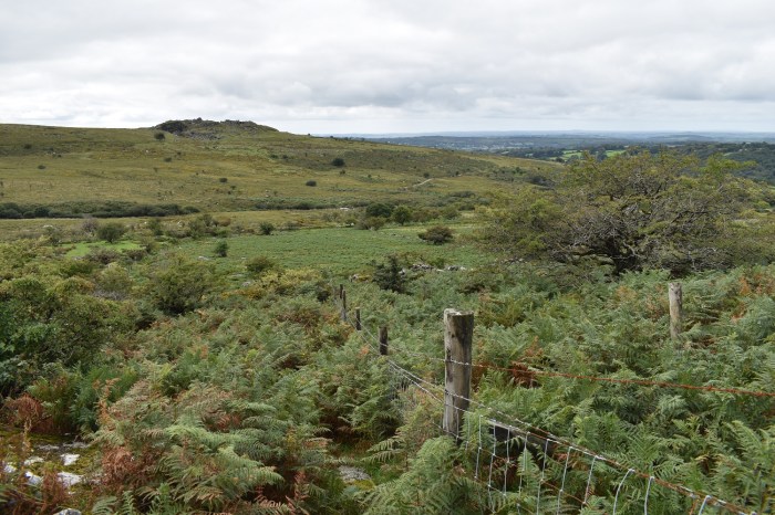 A bit of zoom down the valley that holds Burrator reservoir, Sheeps Tor is left and Leather Tor right. Black Tor is on the hill in front of Leather Tor