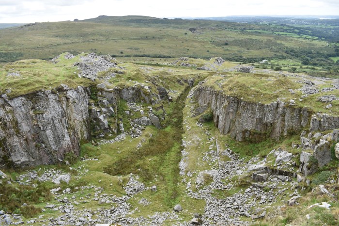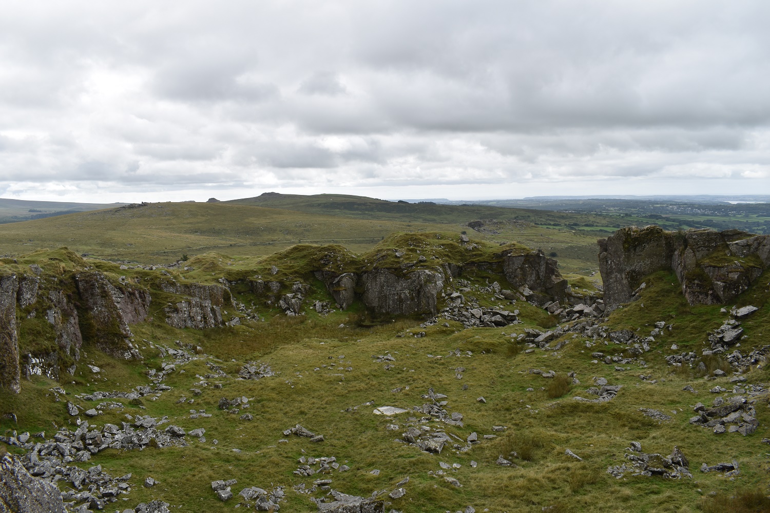 The lower part of the quarry, the quarry buildings are down there to the right. With Leeden Tor and Sharpitor beyond