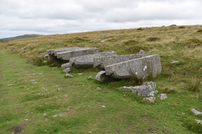 These corbels sit to the west of Swell Tor on the railway siding, there are 12 of them and they were made for London Bridge but never used