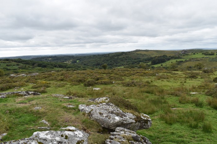 This is Rundlestone Tor, just a short distance from Hollow Tor (down there on the left). Again the Staple Tors and co are in the distance