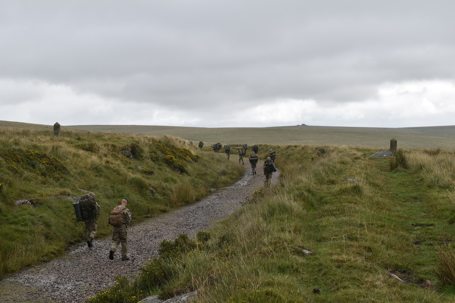 Left, Right, Left Right. Sir yes sir!! Green berets out walking across the moor, I assume they were reserves having camped overnight