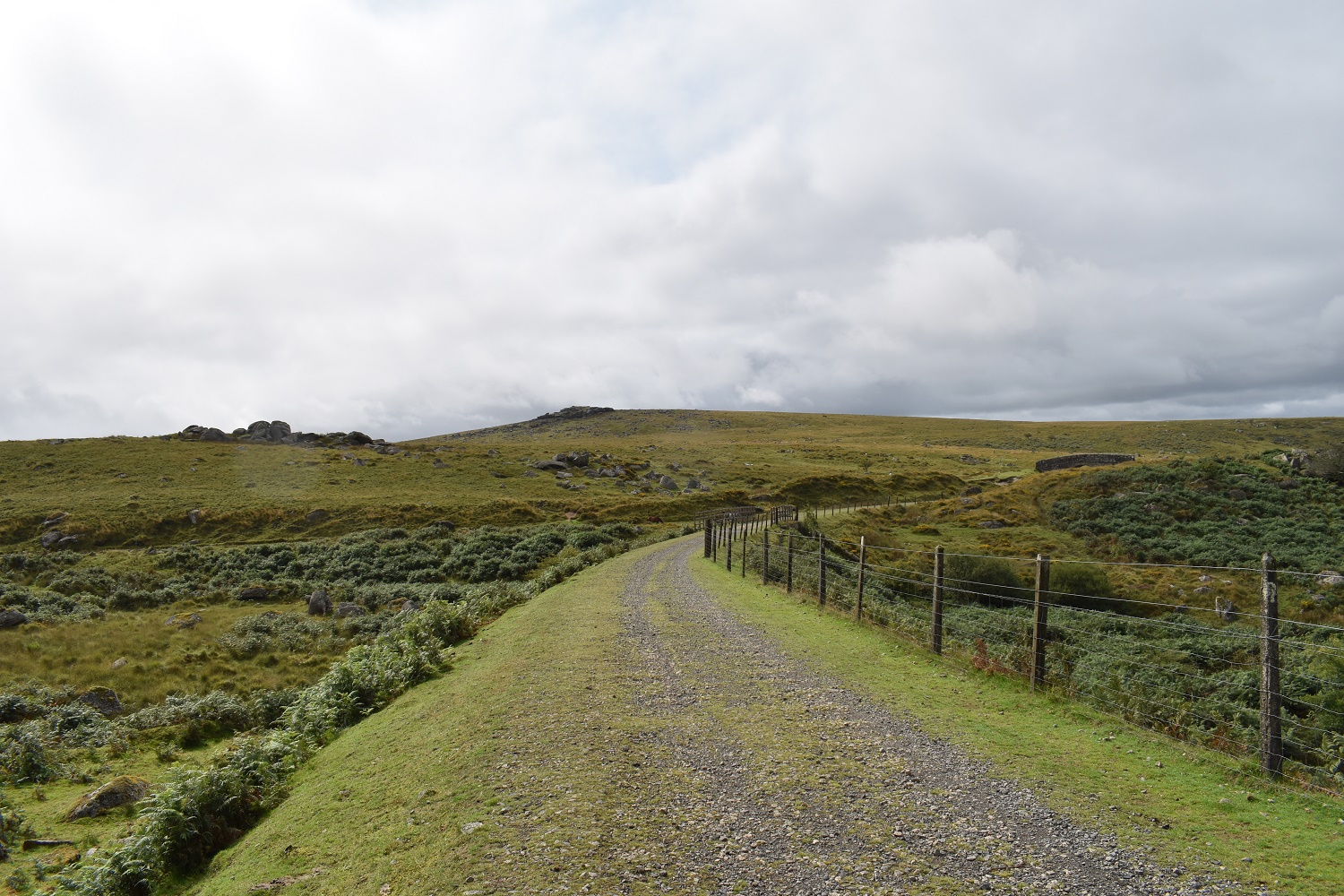The sweeping curve is the old railway track and I’m heading down to it. Ingra Tor, also on my itinerary, is about to get wet from one of the few showers I encountered early in this walk