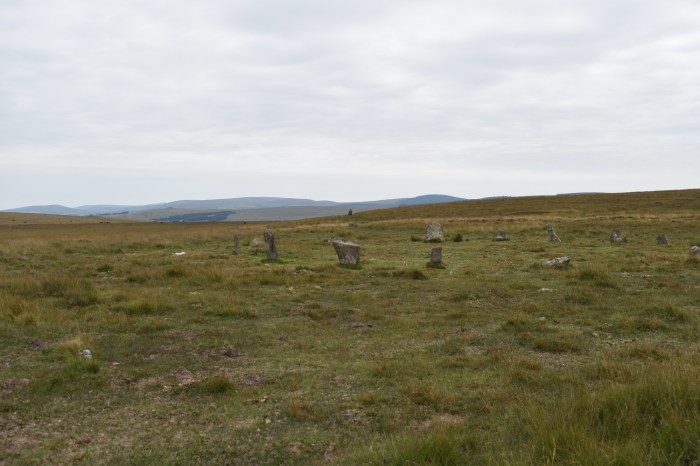 So that’s what those hills look like under sunny skies! My January walk around there was a little wetter. The walk up to Cosdon Hill from the stone circle was one of the longest, coldest, wettest and grim slogs I can ever remember.