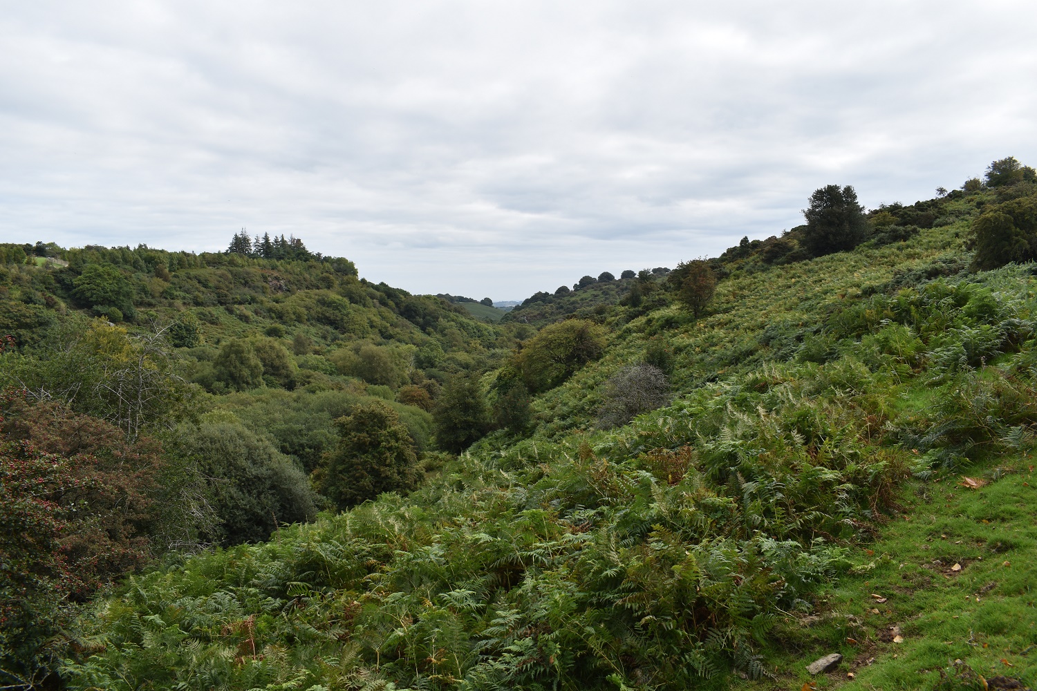 Belstone Green with Cosdon Hill rising beyond the cleave. I’m heading down along the path into the trees to reach the bridge