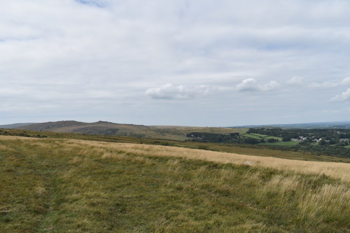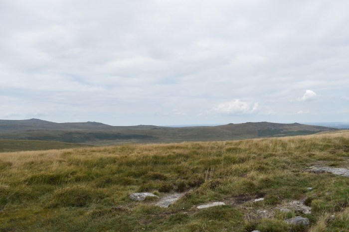 Up on Hangingstone Hill by the military hut. Cut Hill and Fur Tor are in view. The sun starts to come out here
