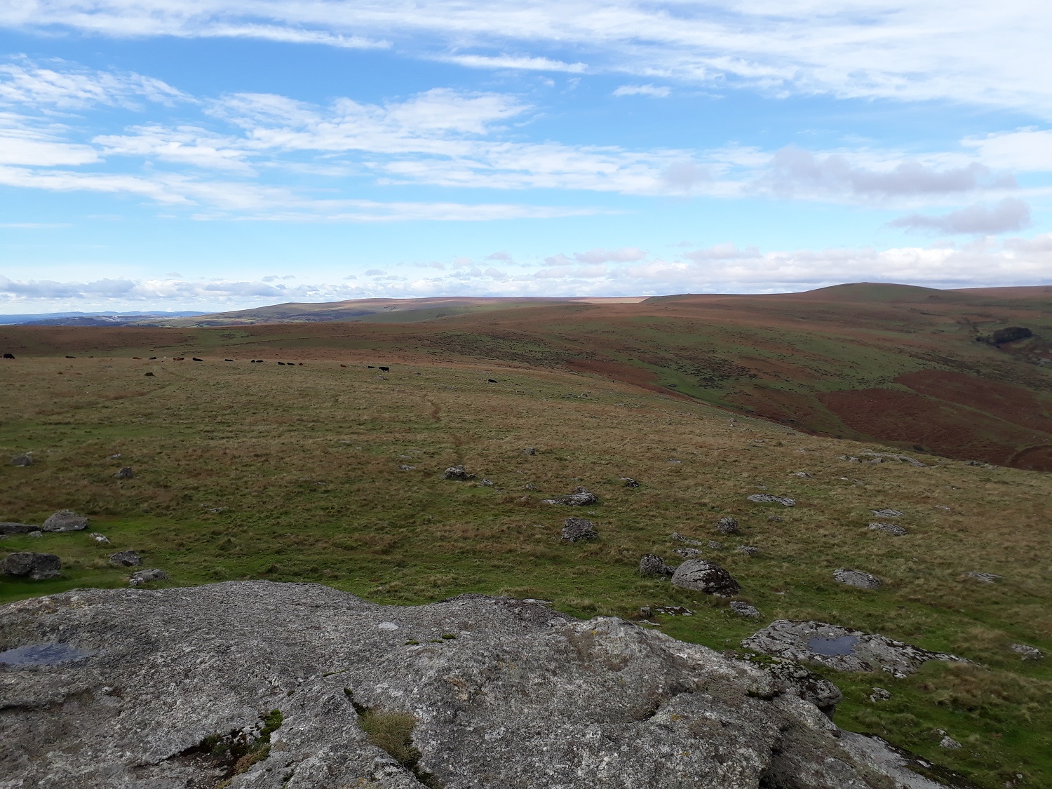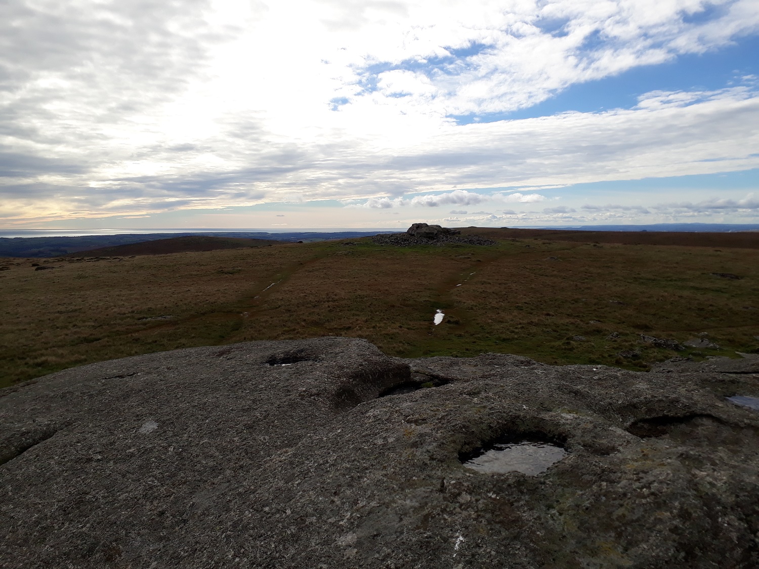 It hadn’t been a good weather week, in fact I wasn’t sure any walk was on at the weekend, as the heavy rain and wind kept me indoors. However hope on Sunday afternoon of a break surfaced and I took the opportunity. It was only a short walk, with a steep up and back down, great views to South Hams and the sea, as well as into southern Dartmoor. The walk took no more than an hour and I saw a few families on Ugborough Beacon making the most of the drier weather to get out. The golf course at the bottom was pretty busy as well. Hopefully the weather will calm down for a week or so before the nights lengthen too much, making long walks almost impossible.