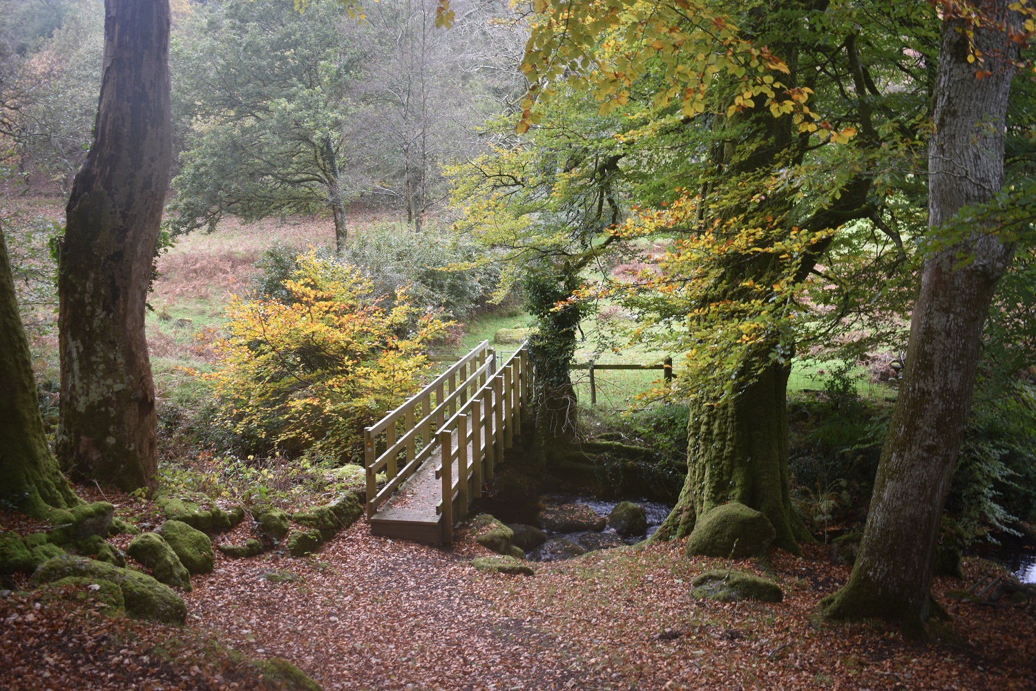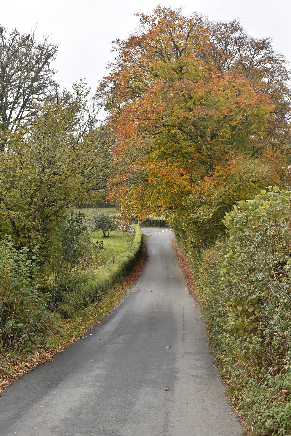 The weekend weather had changed from the bright blue skies and sunshine of the week before. The forecast suggested a dry day on Saturday before rain came in a teatime, with Sunday being a complete washout. As it turned out the weather on Dartmoor was ahead of time by around 4 hours as the rain came in around 1pm. That fine rain, that soaks you through!! However this walk had been planned for the autumn, lots of tree line lanes, tracks and lonnings. Some hills as well and the village of Chagford for refreshments. It all came together and only at the end with the walk, back over Nattadon Common, that I started to really get a bit damp now tree cover had been left behind. The section from Kes Tor to Chagford was particularly good with some lovely colours in the trees. One to remember for next year.