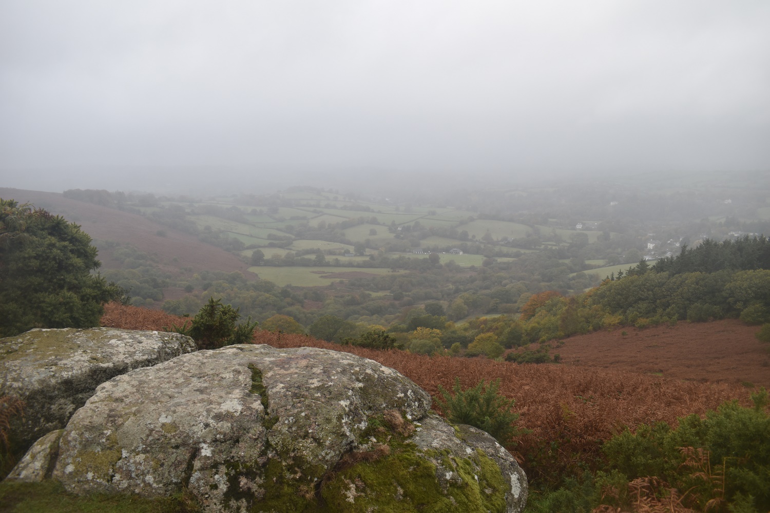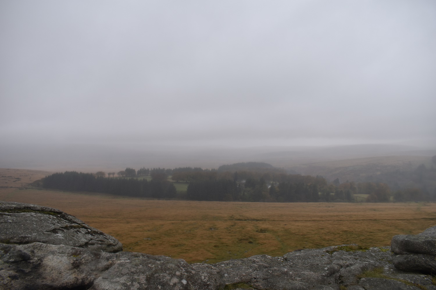 Up on Frenchbeer Rock now and Dartmoor proper. That’s Thornworthy Tor over there, but beyond that it looked pretty misty, grey and grim