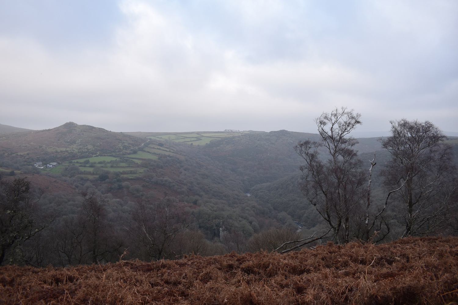 Taking a straight line between Aller Brook and Bench Tor takes you down into a wooded valley and past this waterfall before a steep climb up to Bench Tor. I took a while to find spot to cross a stream in full spate, to ensure I stayed dry.