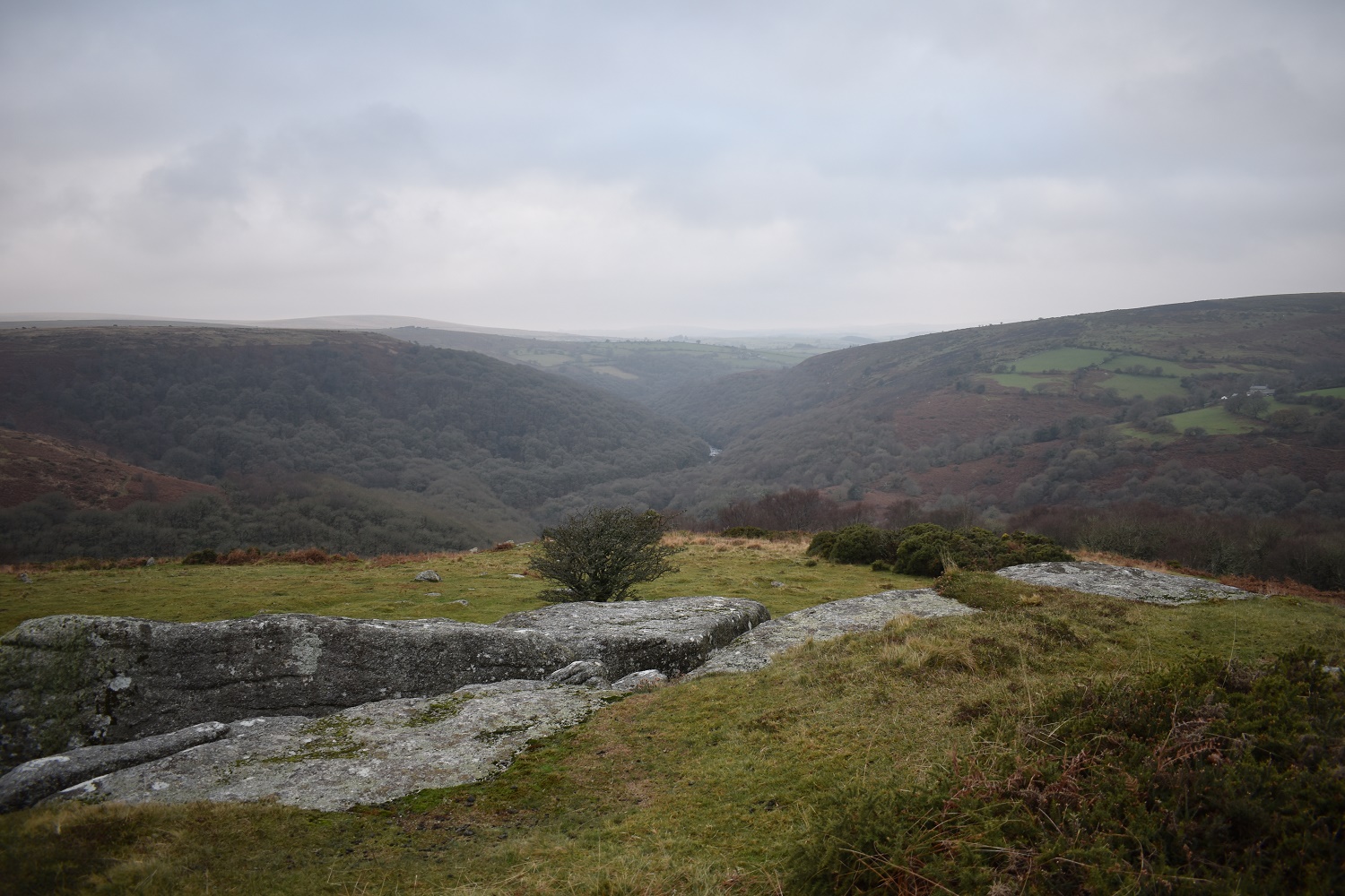 Aller Brook Tor, I sat here for a bit and drank a coffee or two enjoying the view down to Dartmeet and the sun in the distance