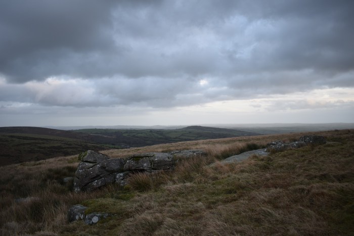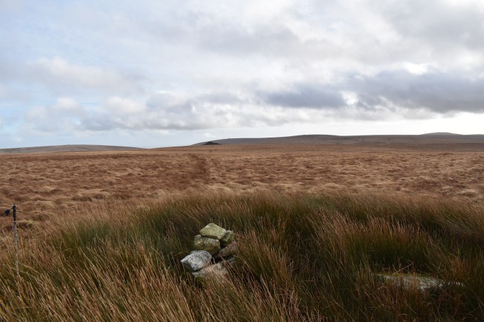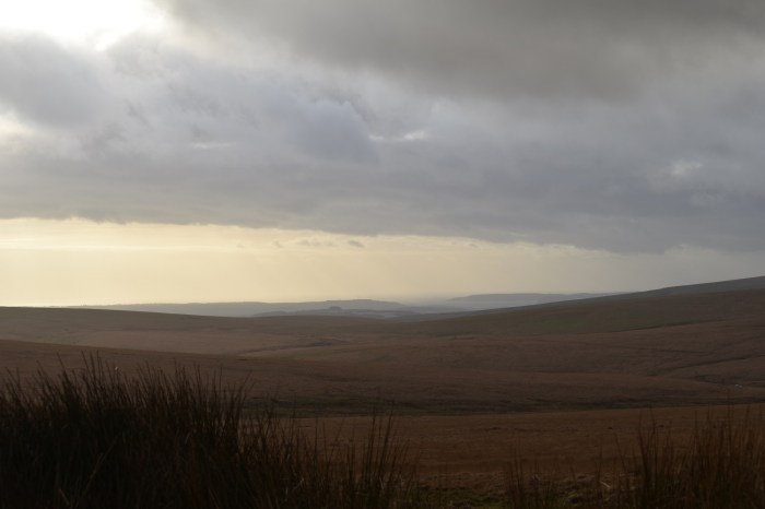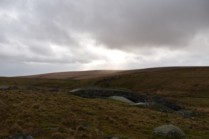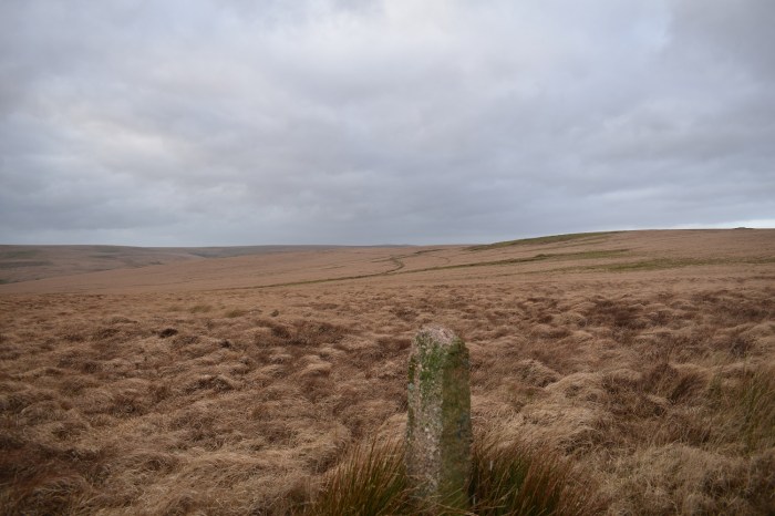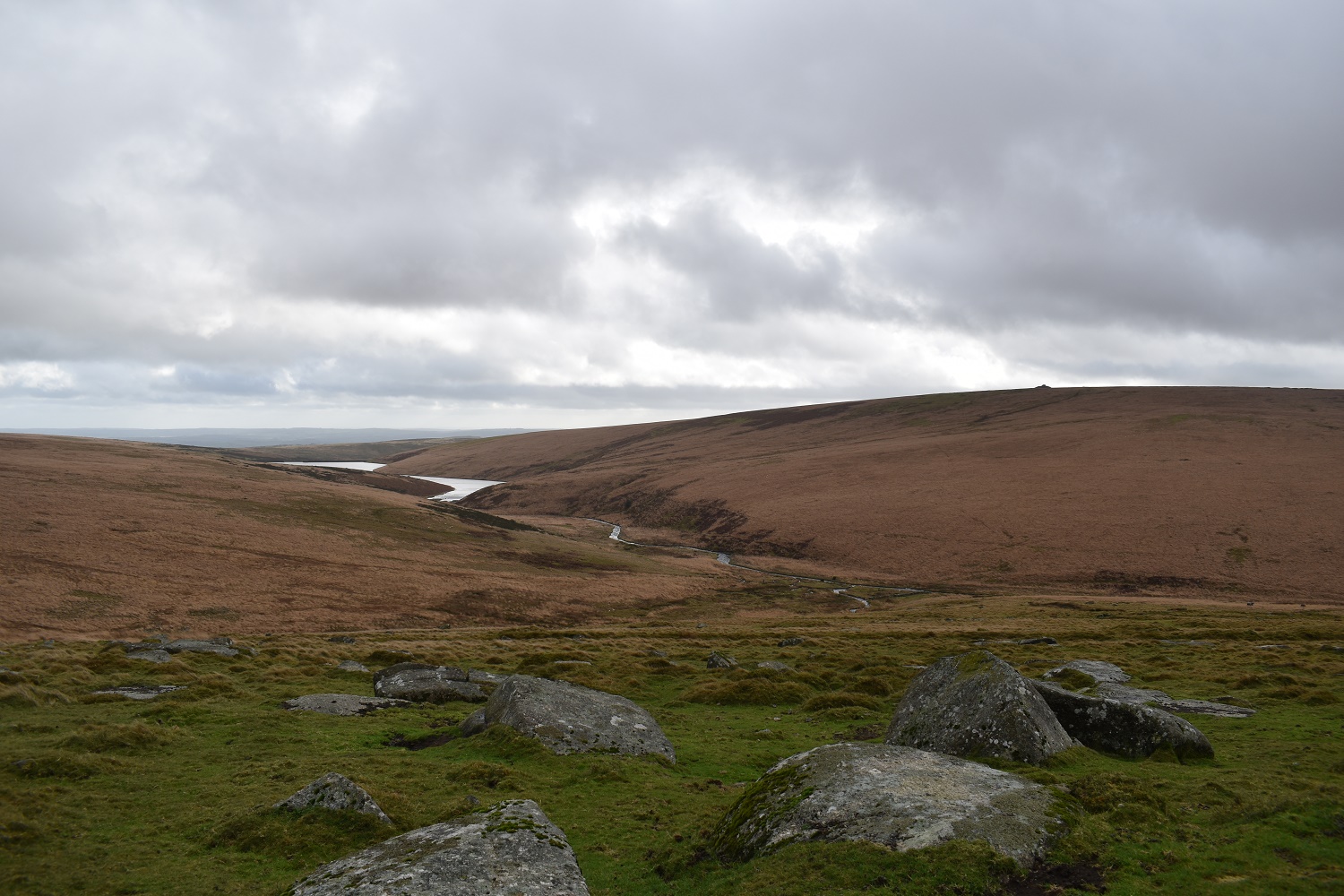 Stalldown Barrow and Three Barrows have the high ground in the distance. It went very dark here for while, but never rained. I started my return journey by heading right from this photo, towards Black Rocks
