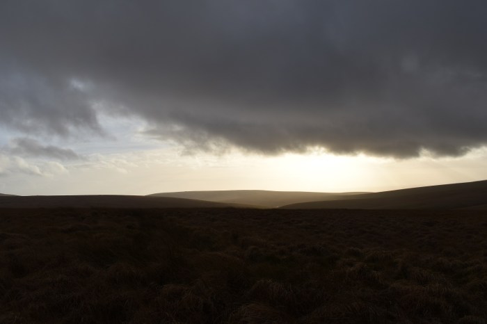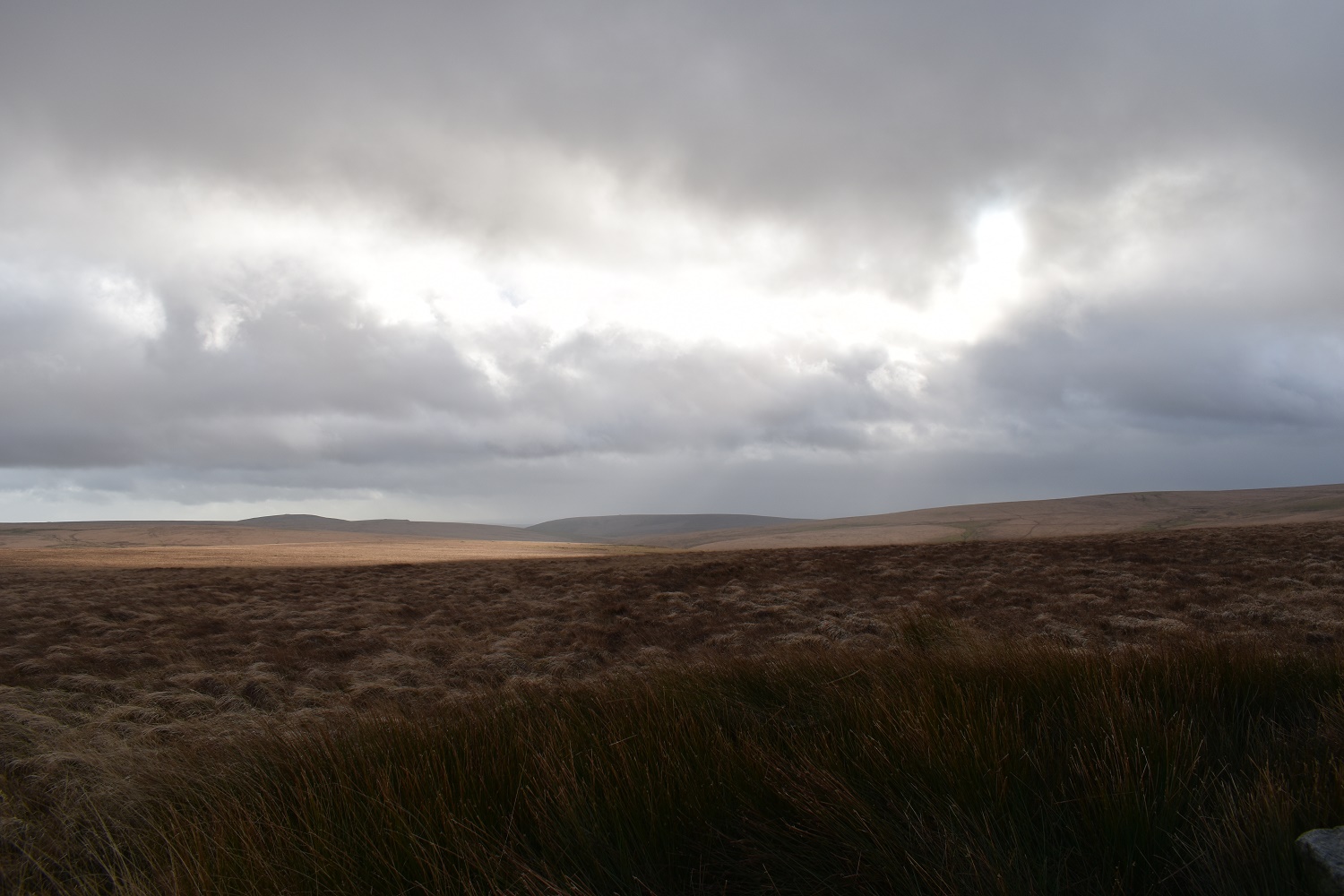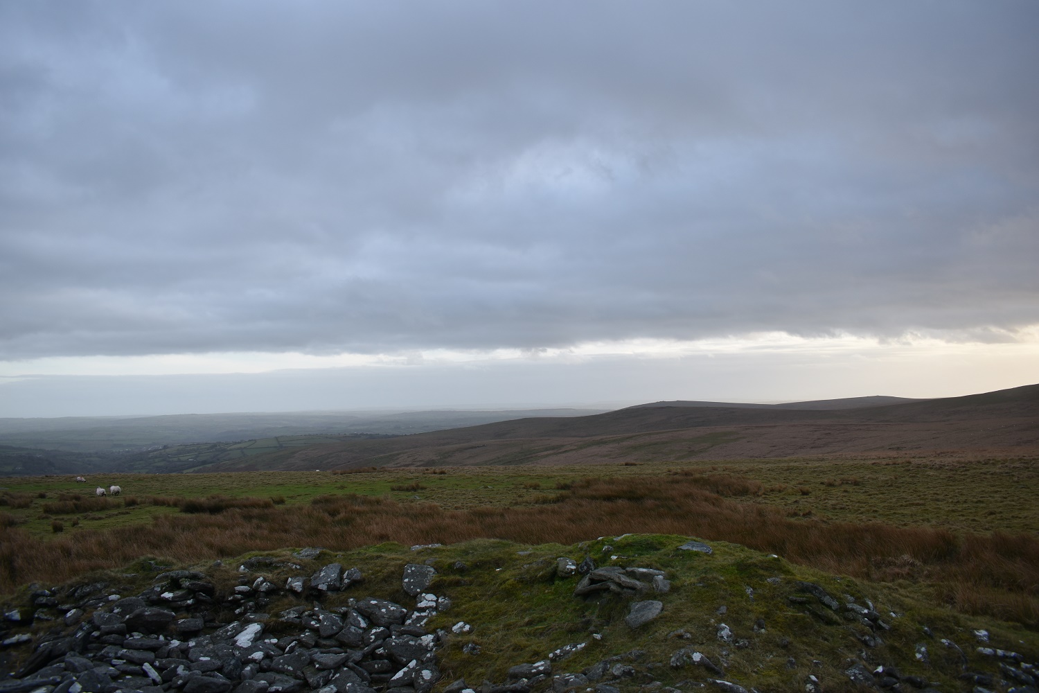 It was looking very black overhead, but sunshine shone over Stalldown Barrow