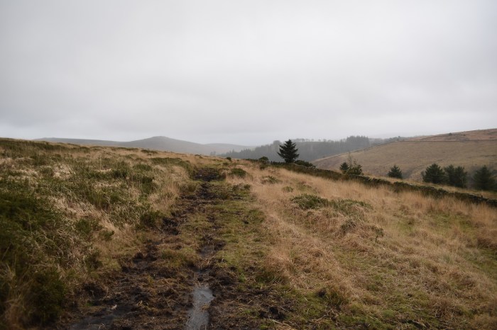 Lakehead Hill is up there on the left however the sunshine on Broad Down has gone and been replaced by low cloud