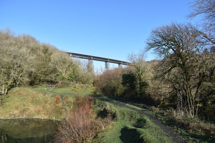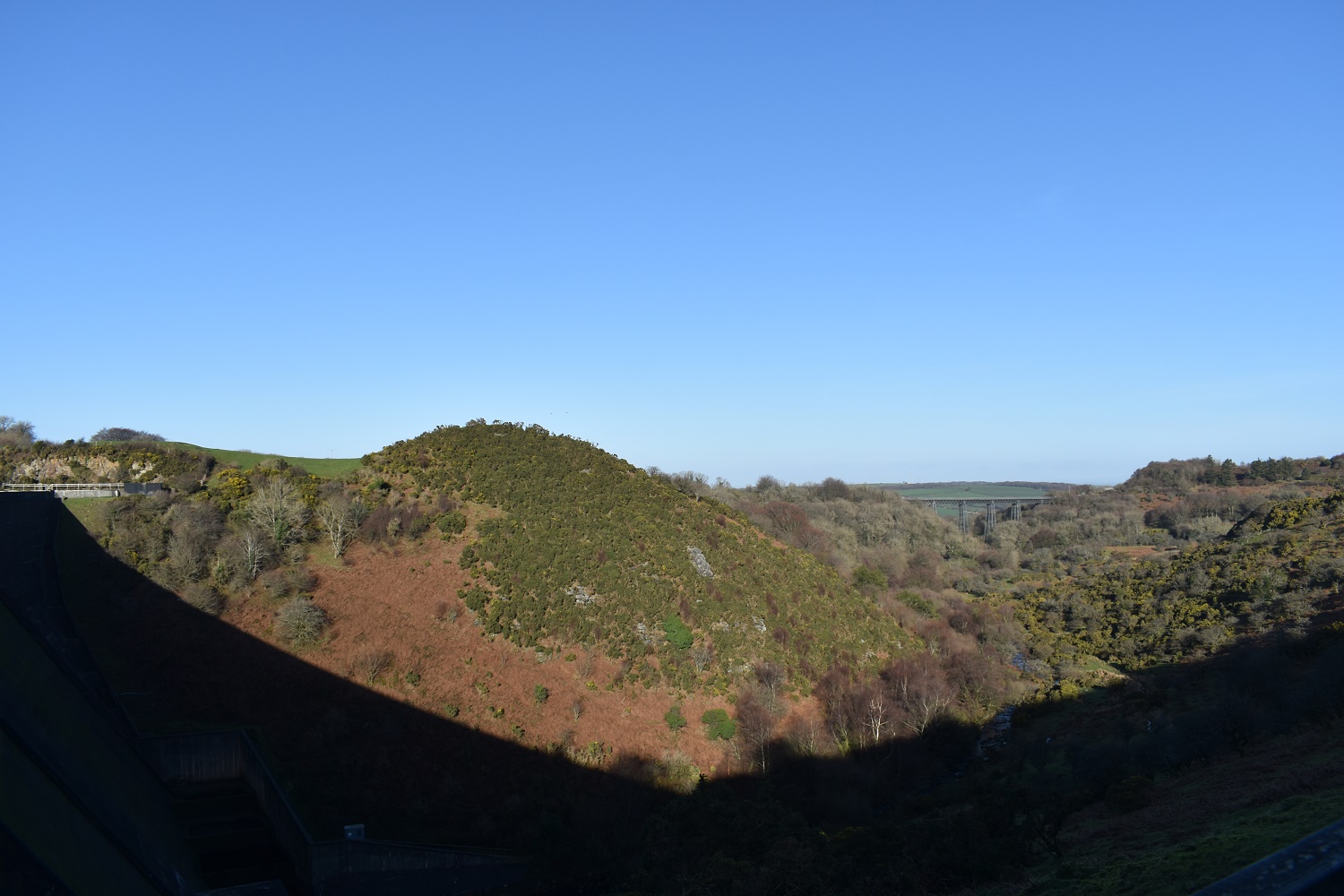 The low sun means the dam casts a long shadow down the valley. Here I’m stood next to the dam looking back to the viaduct