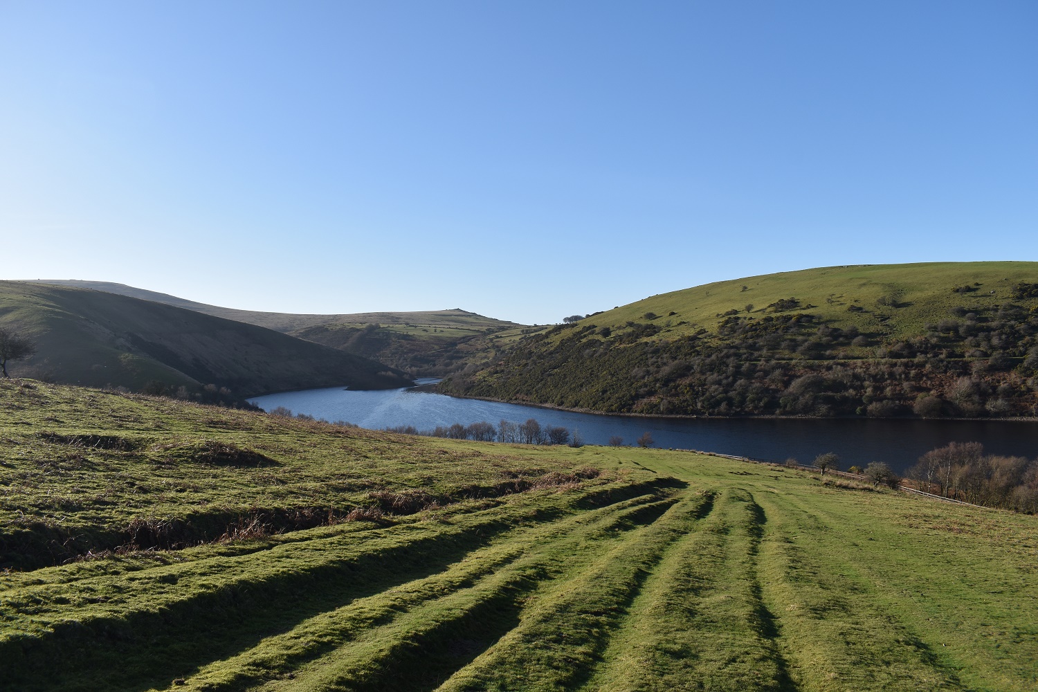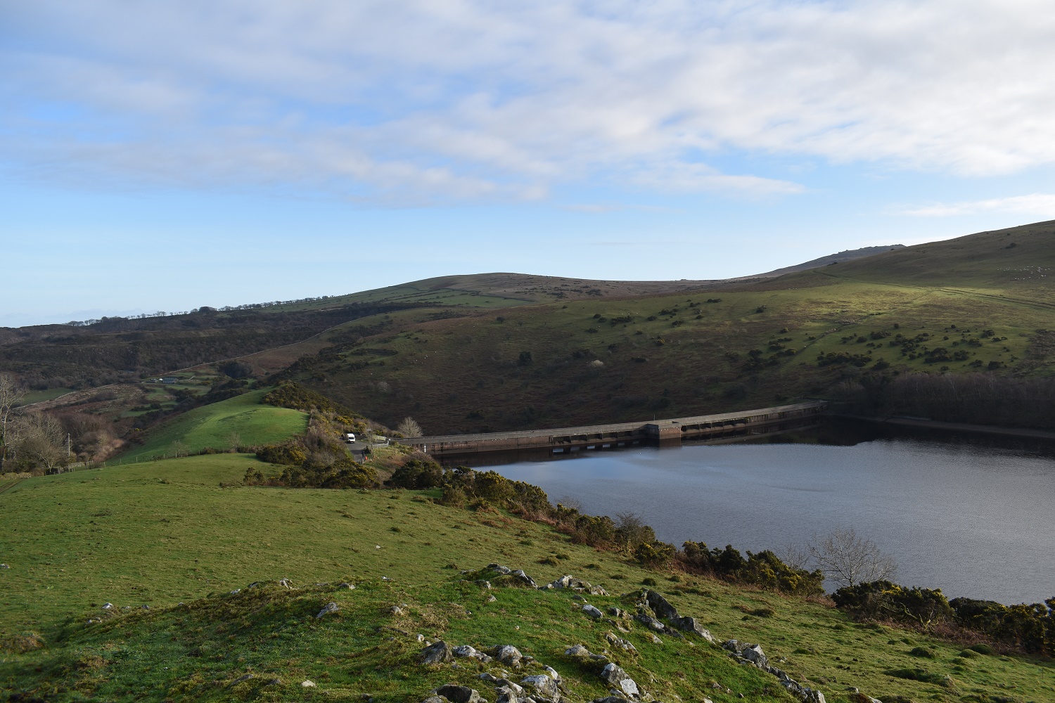 The sun came out at this point as I was descending South Down so I had a coffee with this view of the Meldon Dam and Reservoir