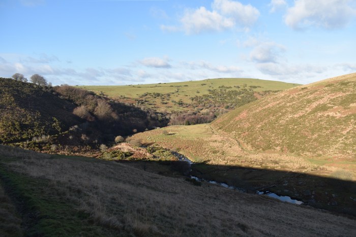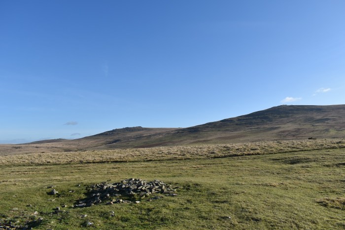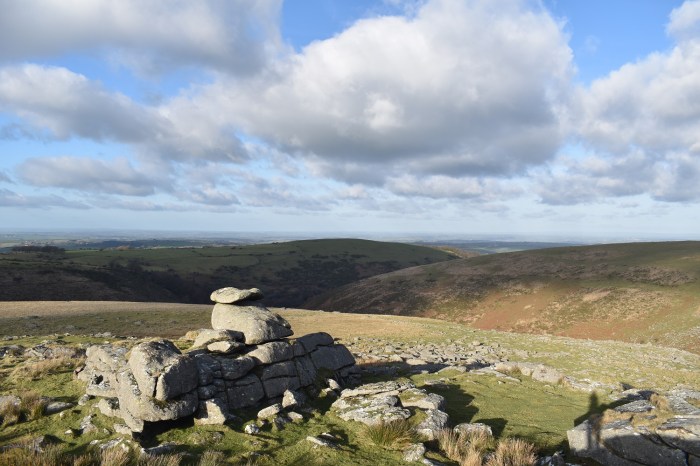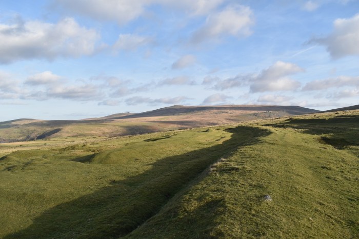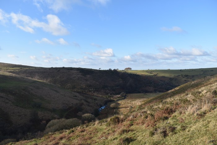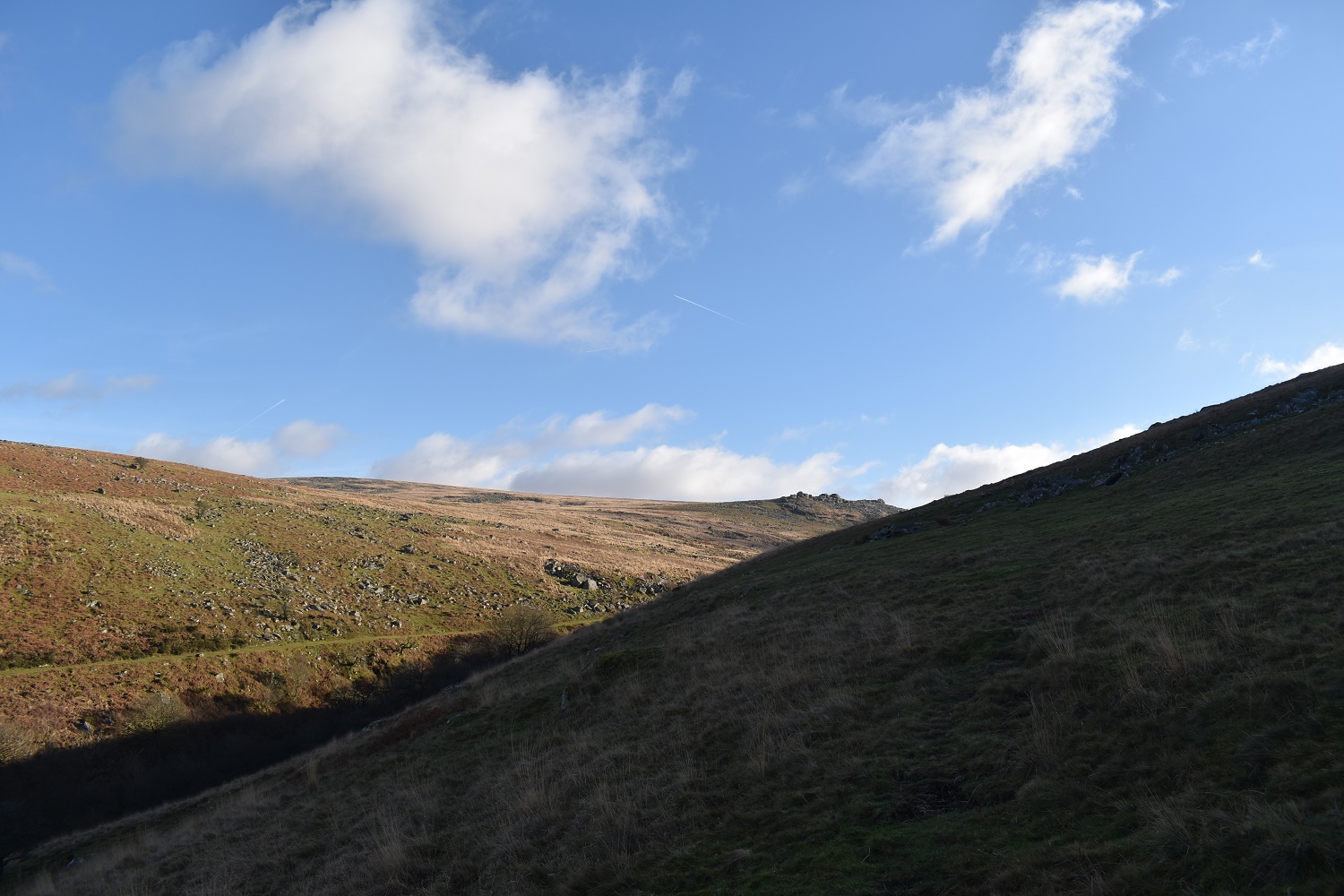 The West Okement valley with Black Tor on the left of the valley and the bulky Corn Ridge on the other. I’m on South Down now